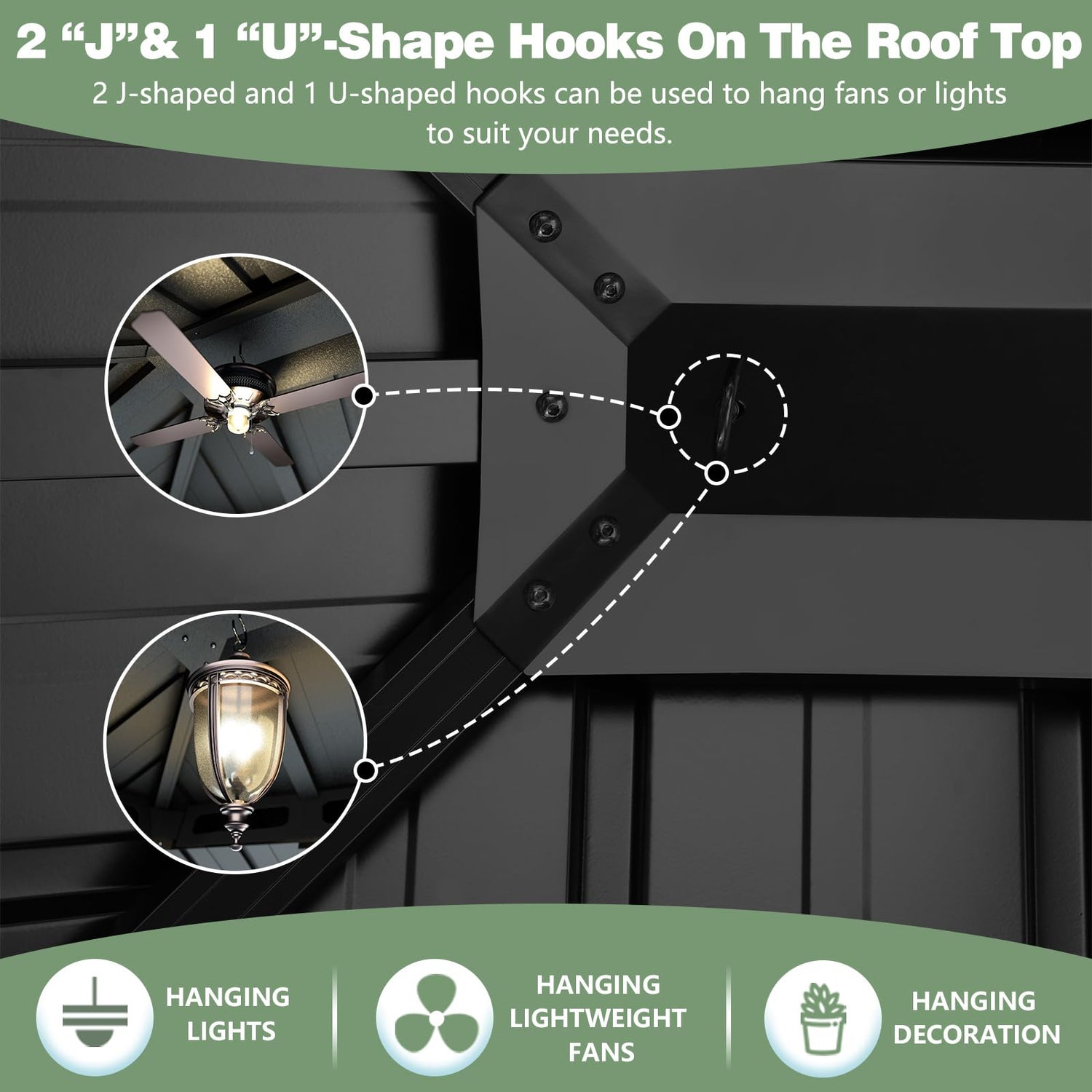 - [HANGING HOOKS] This double roof gazebo is equiped with hanging hooks. You can hang lights, lamps or latterns to light up your outdoor night time, or hang heaters, fans or plants as a decoration. It's all depends on you!