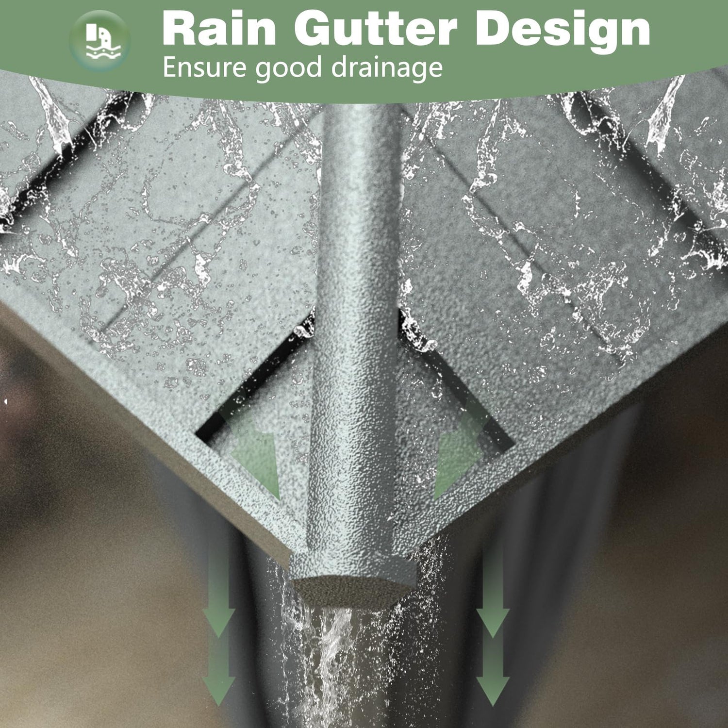 - [DOUBLE ROOF GAZEBO] This 12x20 ft gazebo features double heavy duty galvanized steel roofs which is water-resistant and blocks UV rays, keeping your outdoor time cool and comfortable. The roof is designed with top vents for optimal air circulation and comfort. The sturdy aluminum supportive frame is rust-resistant and makes the gazebo sturdy for long-term use.