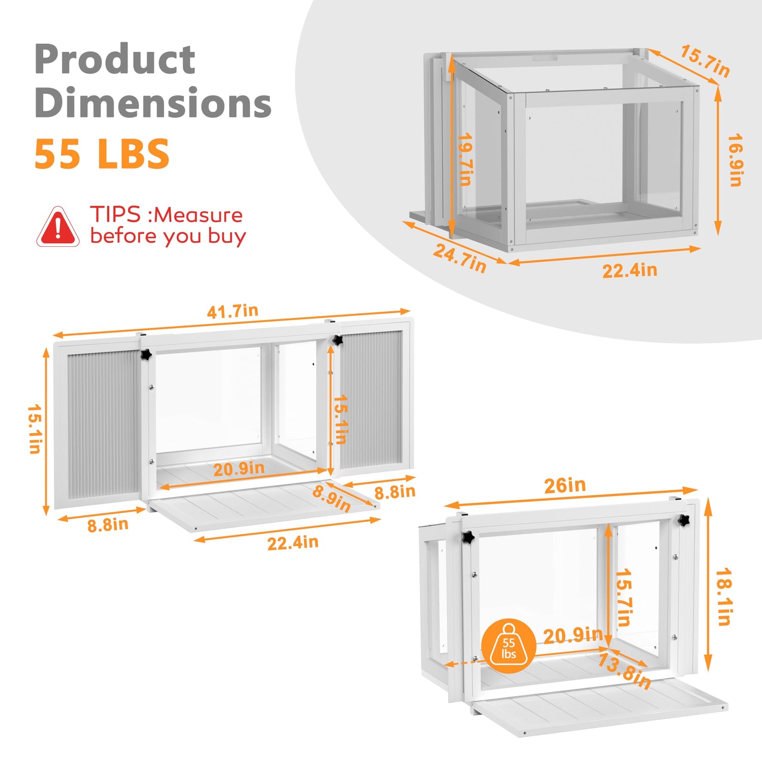 - Premium Solid Wood Construction: This cat window box is made of solid fir wood, which makes cats feel more secure. The sloped waterproof roof prevent water pooling, ensuring year-round outdoor use. This 24.7" D × 22.4" L× 19.7" H window catio can easily bear the weight of 2 adult cats and can support at least 55 LBS