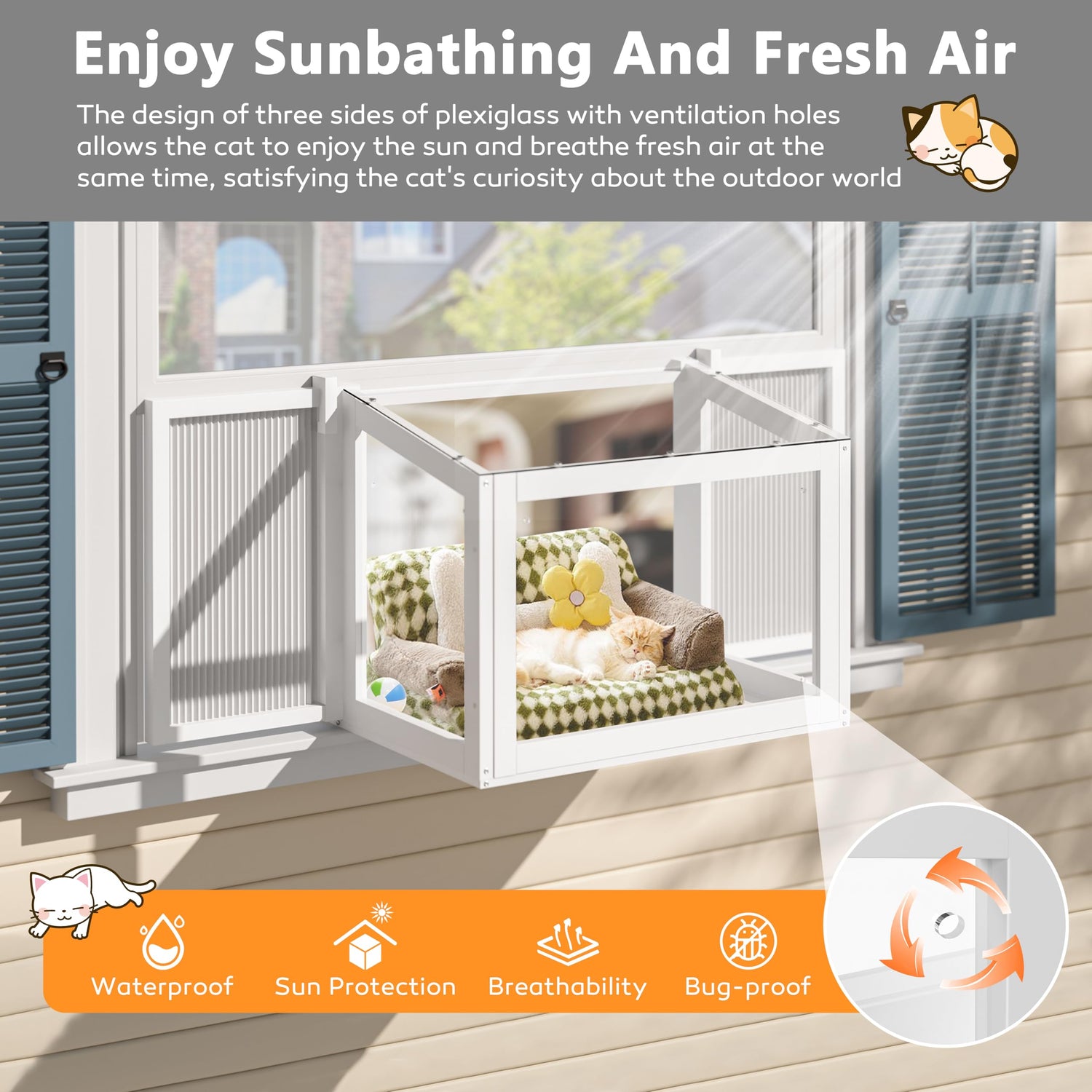 - Panoramic Viewing & Bug Defense: Surrounded by plexiglass with ventilation holes on three sides, your cat gets 360° wildlife viewing while staying protected from insects. This cat window box allows your cat to enjoy sunbathing comfortably. Sunbathing can relax your cat's muscles, promote blood circulation, and release stress and anxiety
