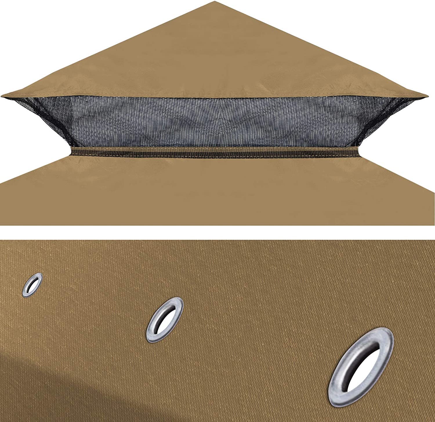 YardGrow 10x10 FT Gazebo Replacement Canopy Top Cover 2-Tiered Upgraded Patio Sunshade UV Protection, Canopy Cover ONLY (Tan)