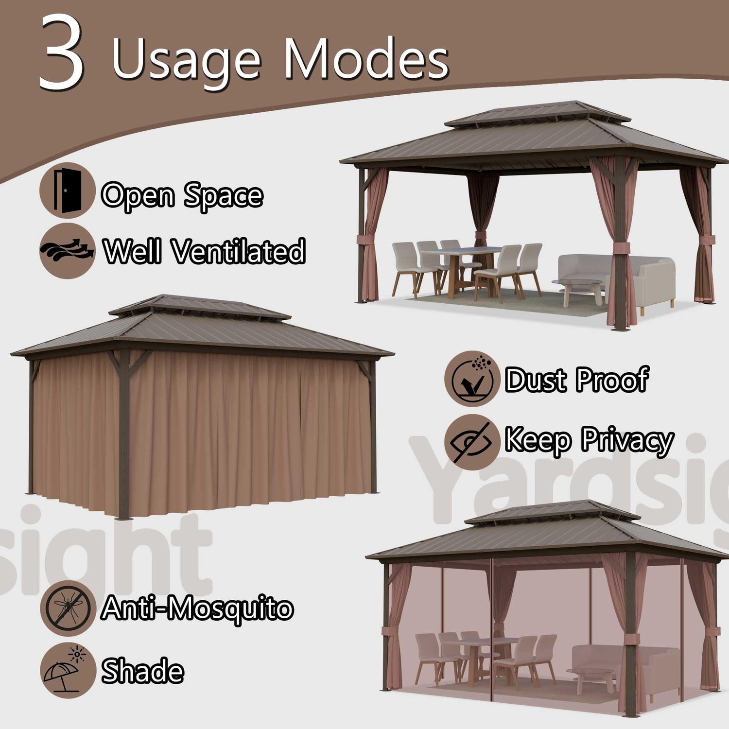 Details: Yardsight Hardtop Gazebo, Galvanized Steel Outdoor Aluminum Canopy with Netting and Shaded Curtains, Double Roof Pergolas, Permanent Metal Pavilion for Patio, Backyard, Deck and Lawns