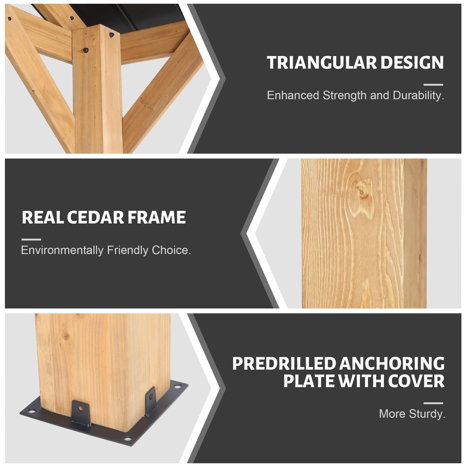 - Natural Cedar Beauty: Crafted from the finest natural cedar sourced from the lush forests of Finland and Sweden, our cedar gazebo exudes timeless elegance. With its smooth texture and remarkable anti-crack properties, the cedar wood infuses your outdoor sanctuary with an authentic, earthy ambiance.