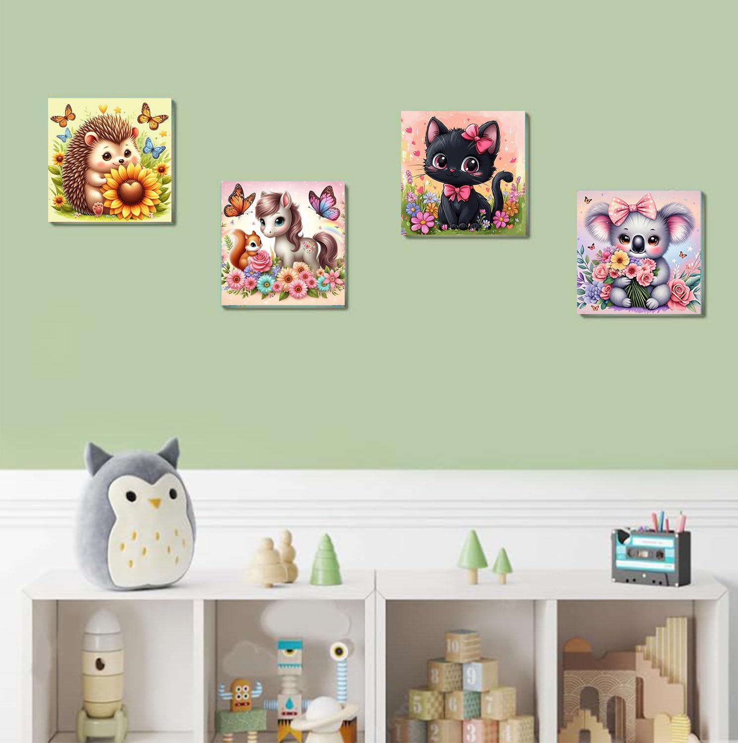 YarnWhimsy 4 Pack Paint by Numbers Kit for Kids with Frame- Animals Paint by Numbers for Kids Ages 4 8 12, Easy Horse Cat Hedgehog Koala DIY Acrylic Oil Painting Kits for Home Wall Decor(8X8inch)
