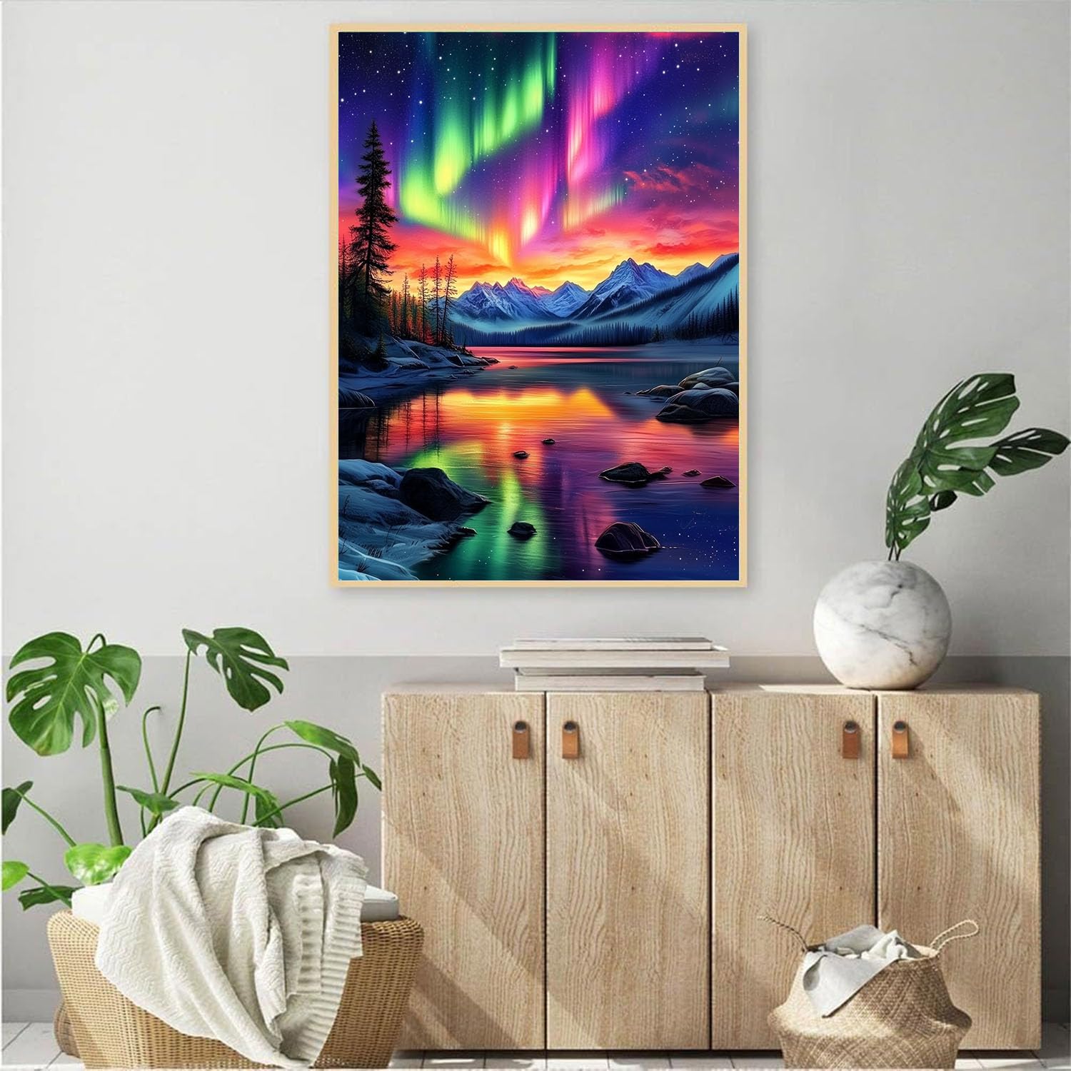 YarnWhimsy Aurora Diamond Art Kits for Adults,Landscape Diamond Painting Kits for Adults Beginners,Mountain 5D Diamond Painting with Round Gem Art Kits for Gift Home Wall Decor 12x16 Inch