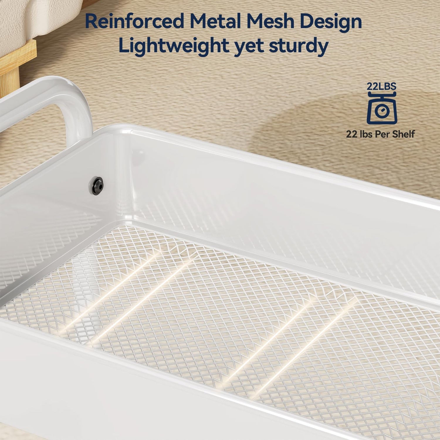 - 100% Metal, Sturdy and Durable: The 3 tier rolling cart is entirely made from solid carbon steel, with the bottom mesh of each basket reinforced with strengthening ribs. This makes the carts with wheels both lightweight and robust,per shelf weight capacity of up to 22lbs