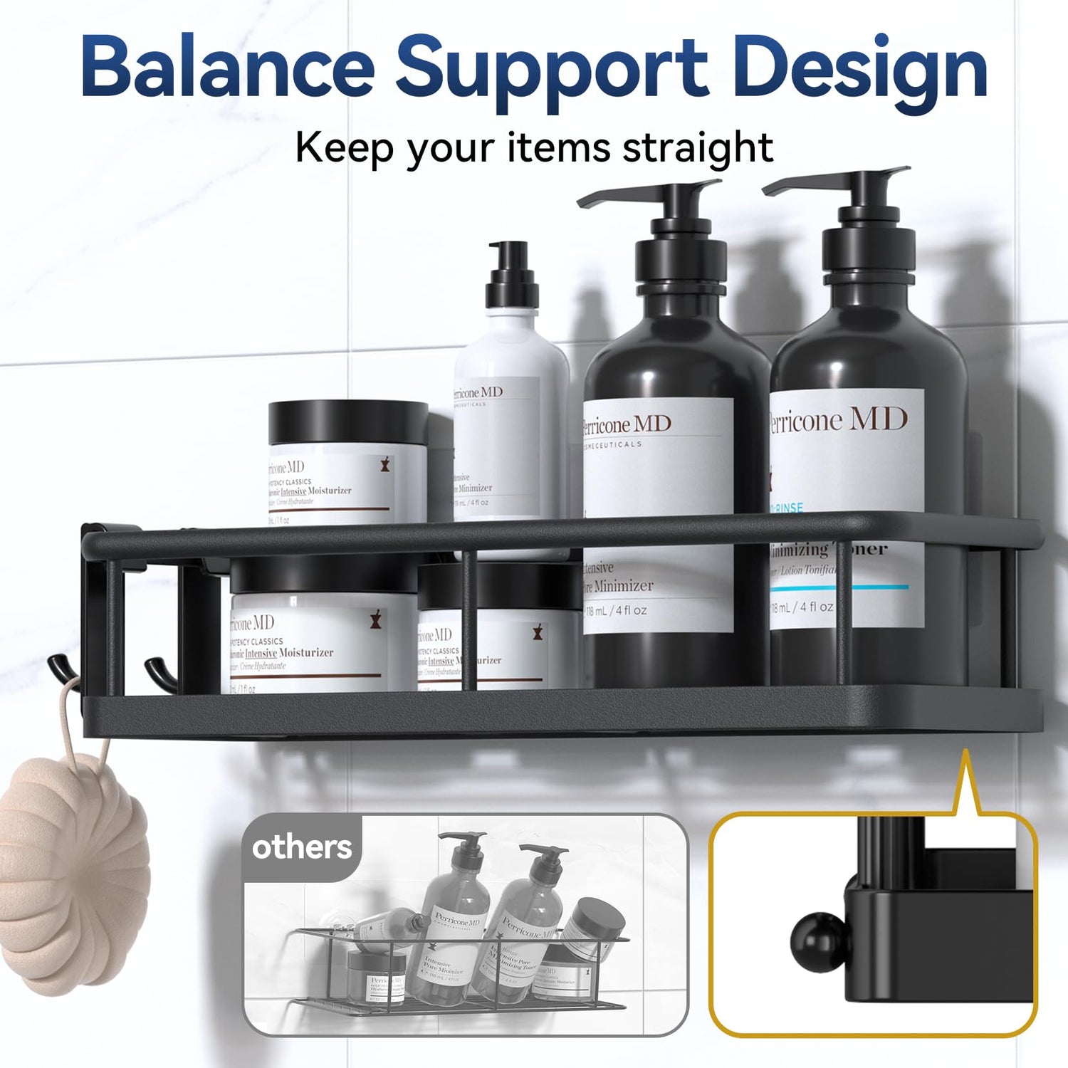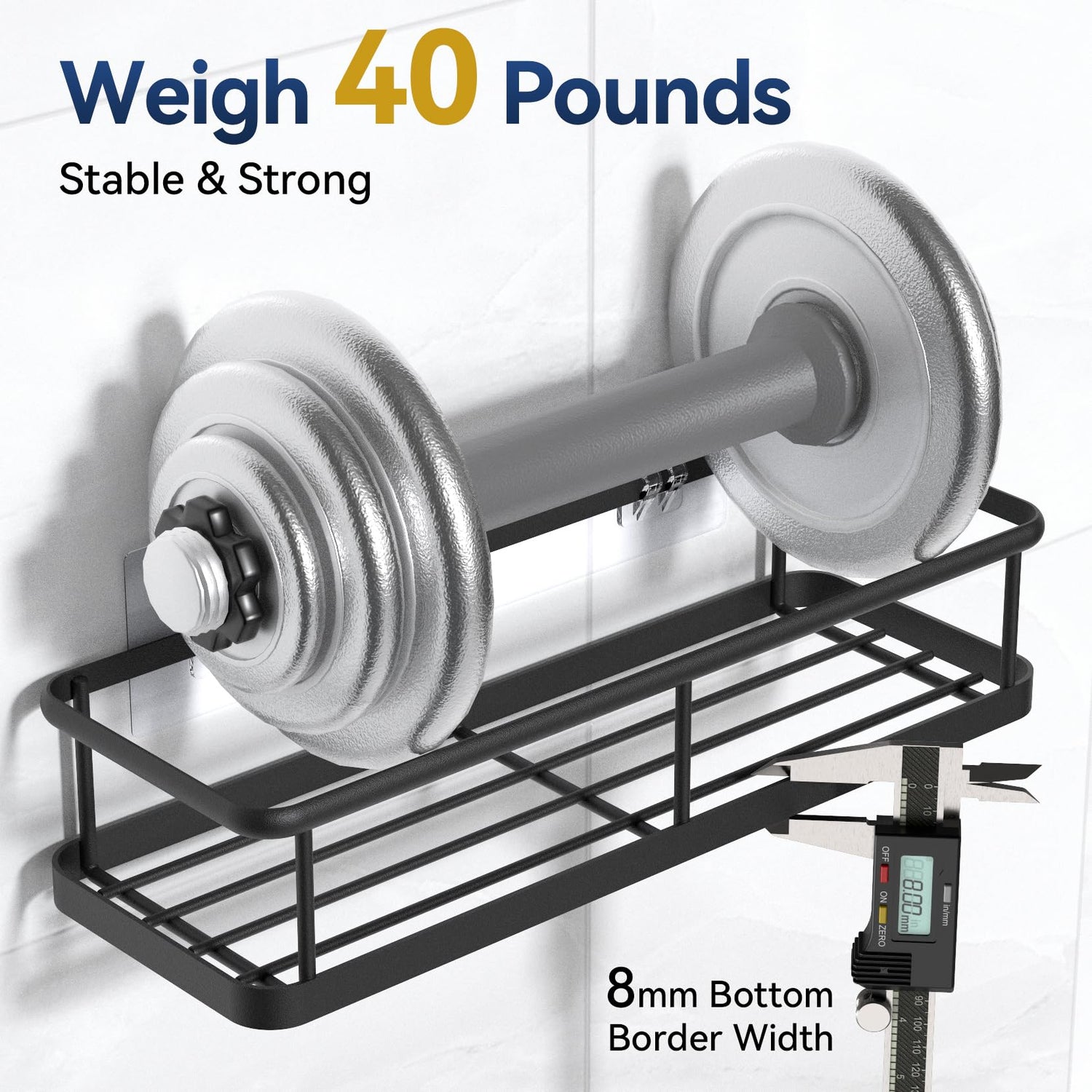 - 【Weight 40 Pounds, Super Adhesive Force】Double hooks allow the shower shelf for inside shower to hold 40 pounds. Small round beads on the back for greater stability. Keep bottles in the shower basket in the bathroom so they are easy to access and use. When installed correctly, there is no need to worry about dropping