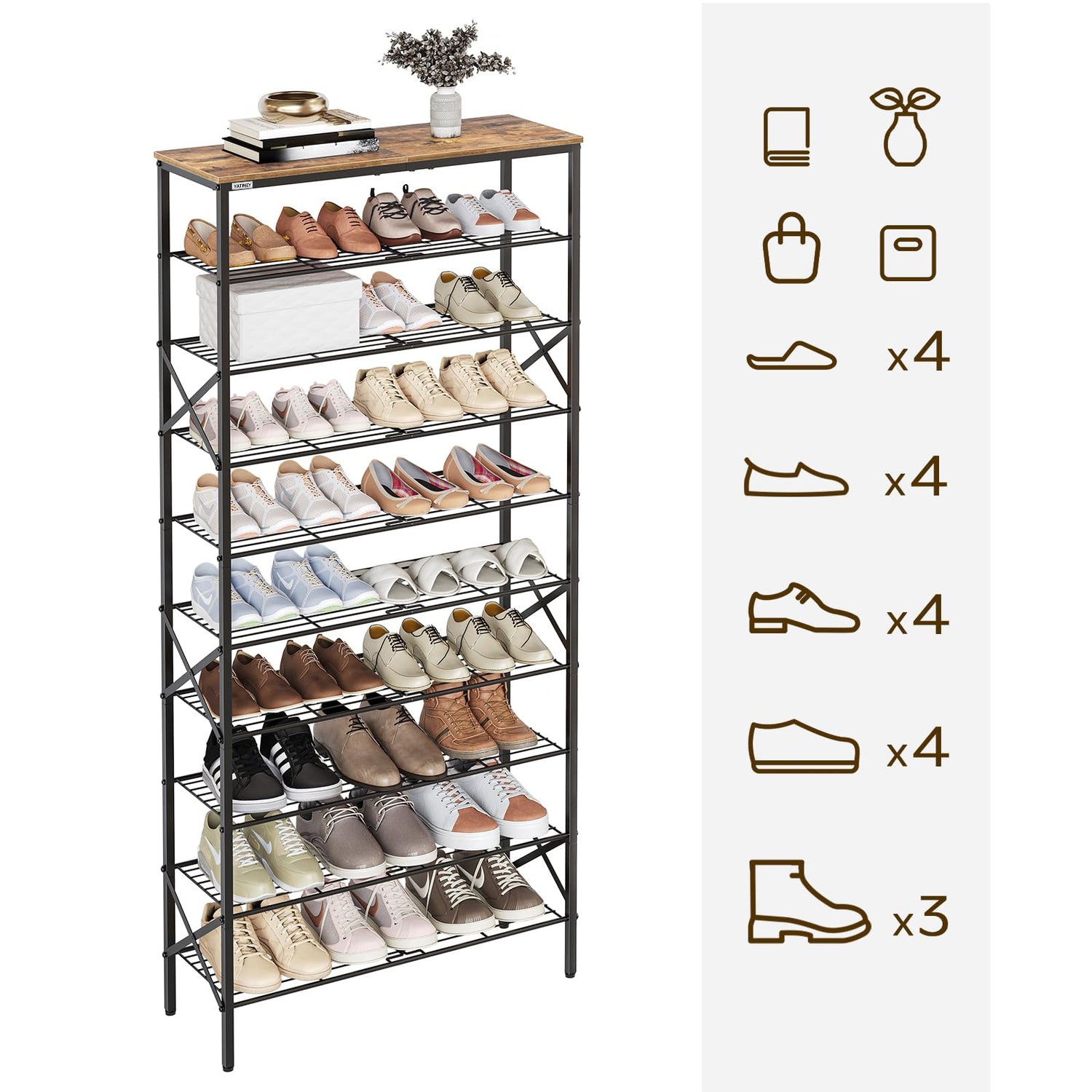 YATINEY 10 Tier Shoe Rack, Shoe Storage Organizer, Large Capacity Shoe Shelf Holds 40 Pairs of Shoes, Durable and Stable, for Entryway, Hallway, Closet, Dorm Room, Rustic Brown SS10BR