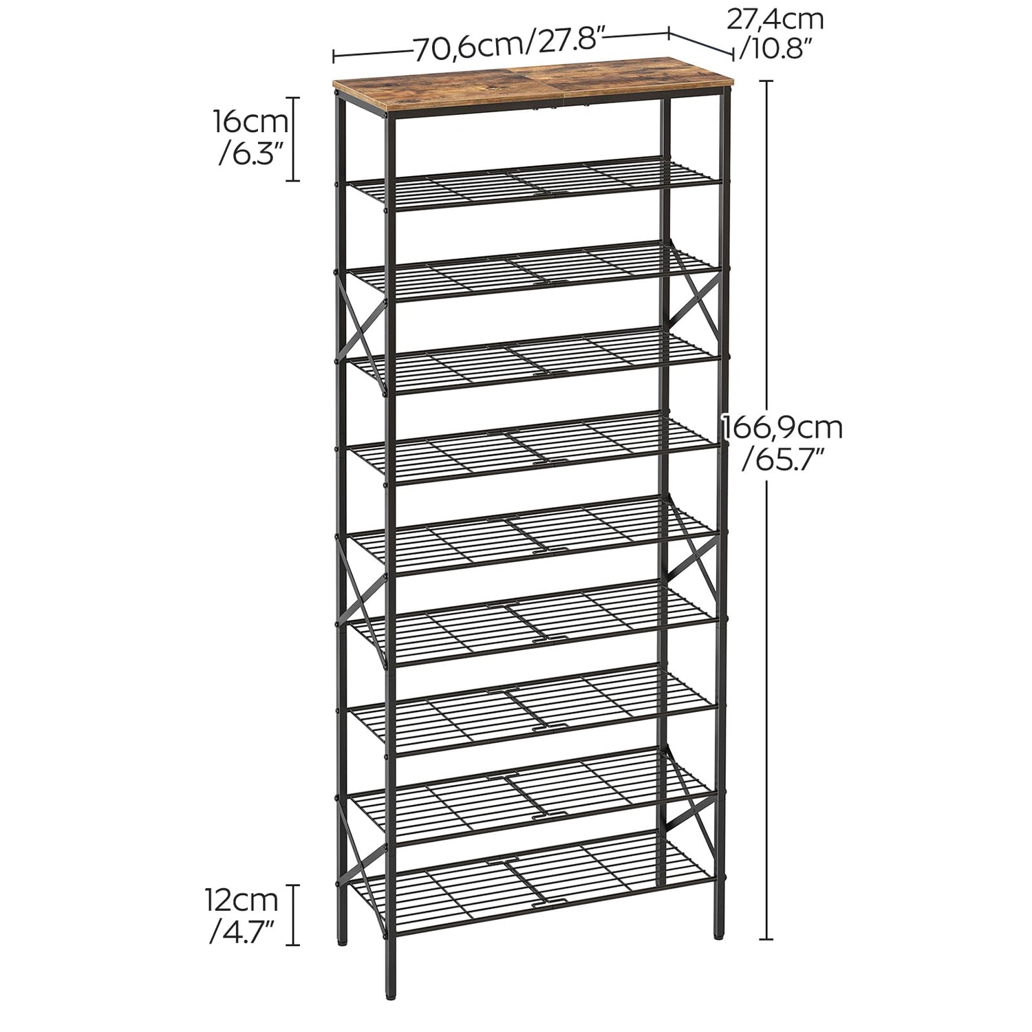 - Thoughtful Shoe Shelf: The combination of retro-finished panel and black mesh frame represents the industrial style. The multi-level design effectively stores your shoes with protection, beautiful and practical