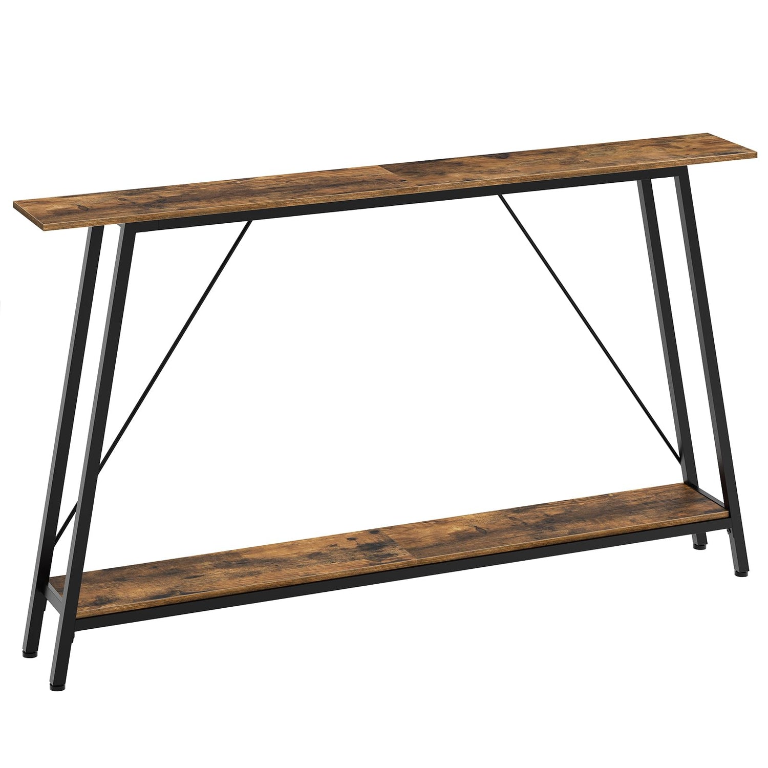 YATINEY 55" Narrow Console Table, Long Skinny Sofa Tables, Industrial Entryway Table, Behind Couch Table Skinny, 2-Layer Hallway Table for Entryway, Living Room, Foyer, Rustic Brown and Black CT14BR