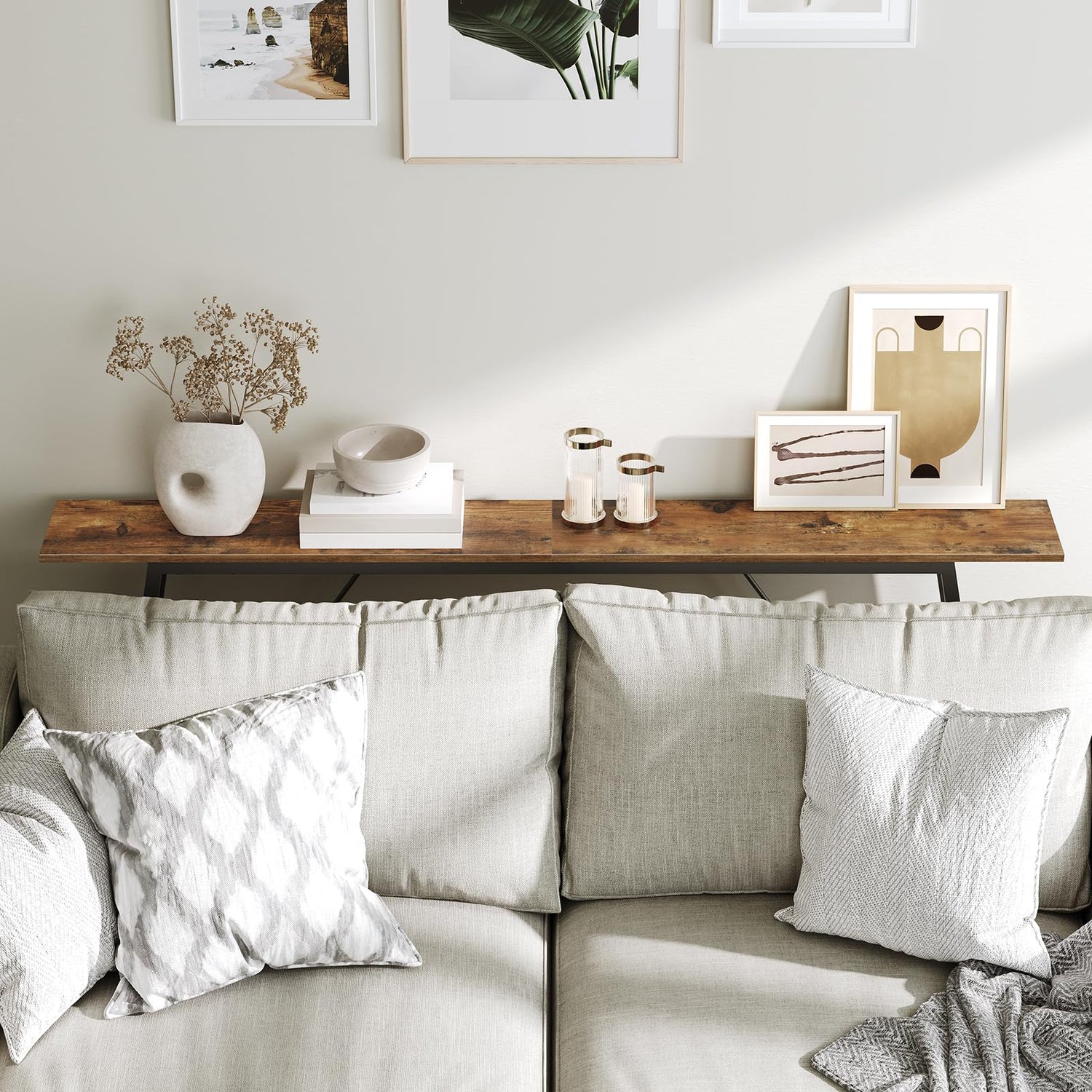 - Extra Storage Space Behind the Sofa: Save the limited space around the sofa, now you can put the remote control or a drink whenever you lie comfortably on the sofa. Despite its narrow design, this living room console table adds valuable storage space without taking up extra room