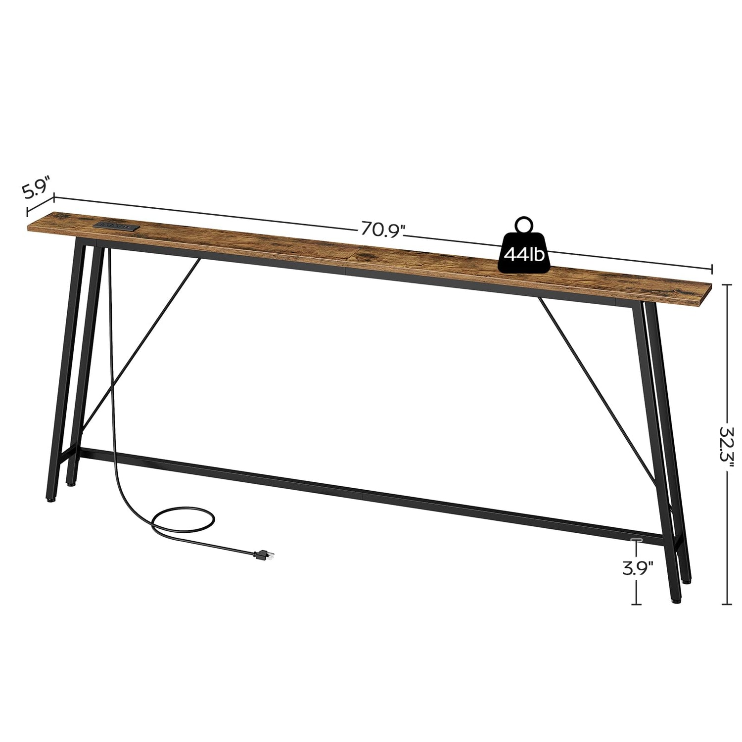 YATINEY 70.9" Console Table with Power Outlets, Sofa Tables Narrow Long, Industrial Behind Couch Table, for Hallway, Entryway, Living Room, Rustic Brown and Black CT185UBR