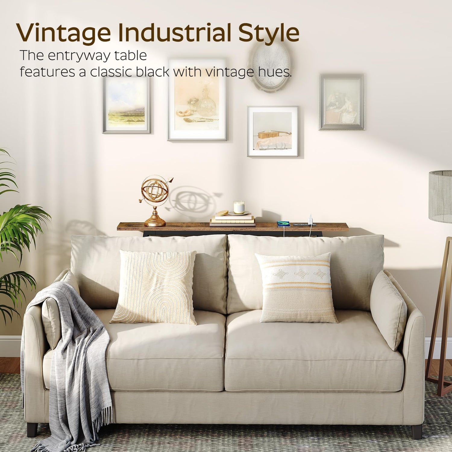 - Console Table with Charging Station: This sofa table comes with 2 standard sockets, 2 USB ports and a 4.9-foot power cord, eliminating the need to search for a power supply. It can efficiently charge your desk lamps, mobile phones and more