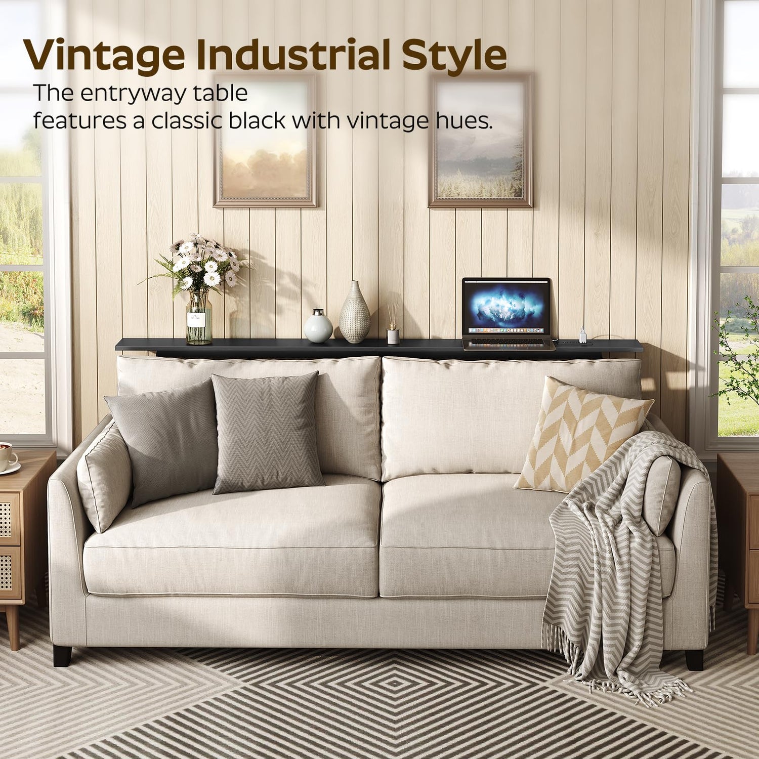 YATINEY 70.9" Skinny Console Table with Power Outlets, 5.9" Sofa Tables Narrow Long, Industrial Behind Couch Table, for Hallway, Entryway, Living Room, Black CT185UBB