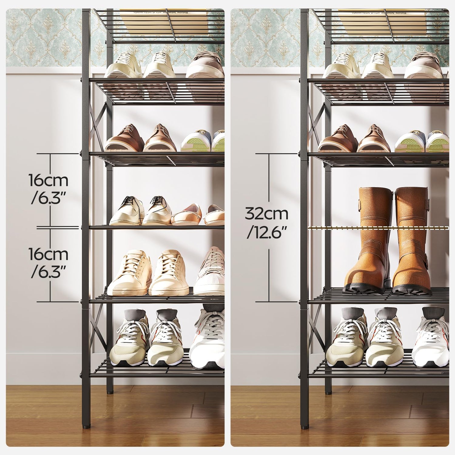 - Reliable Shoe Organizer: The shoe rack is built with quality particleboard and metal, strong and bearable. The top panel can undertake 44 lb and each mesh shelf 22 lb. The side X-shaped design offers doubled enhancement for overall stability