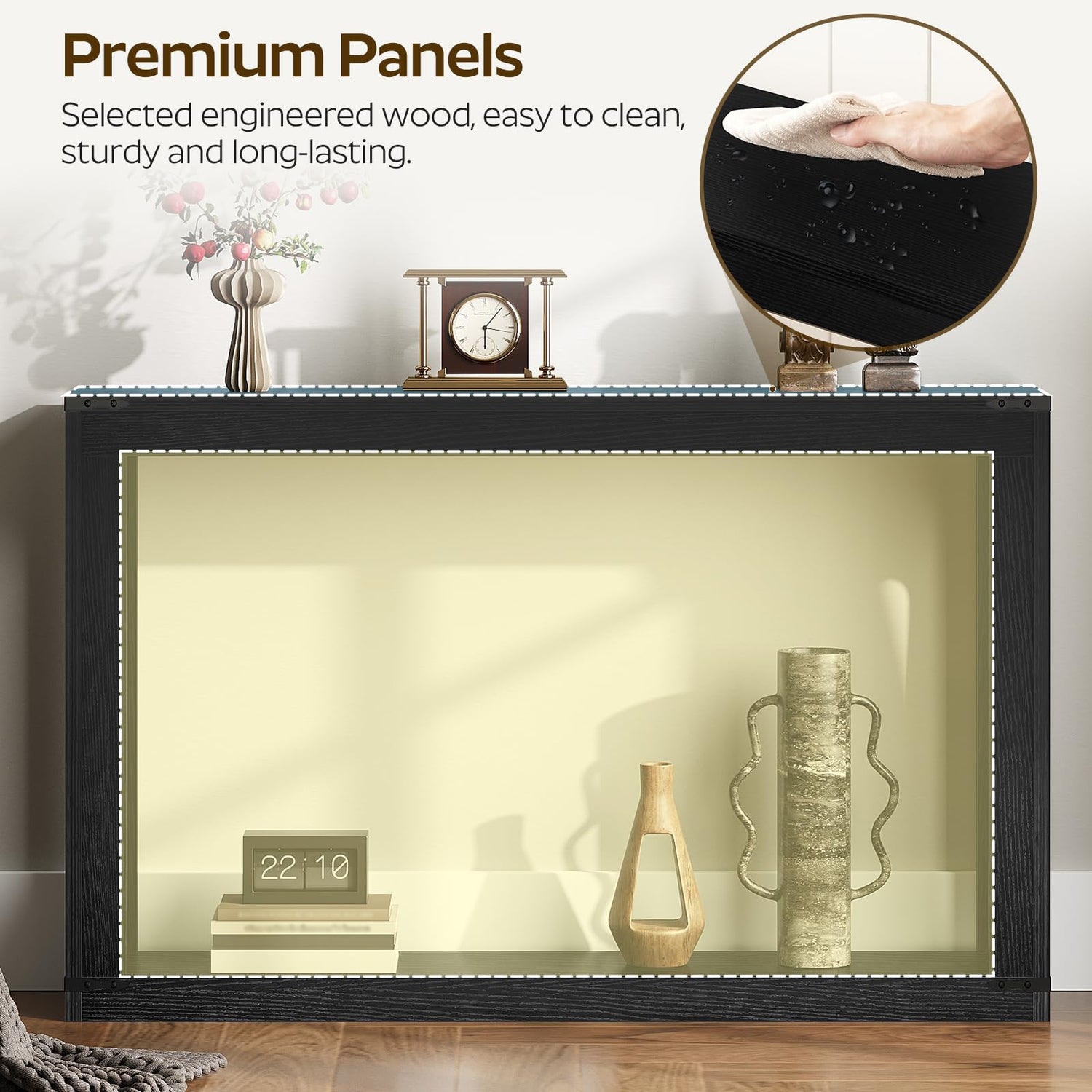 YATINEY Farmhouse Console Table, 47.2 Inches Wooden Behind The Couch Sofa Table with Storage, Entryway Table with Reinforced Support, for Living Room, Entryway, Hallway, Staircase, Black CT24BK
