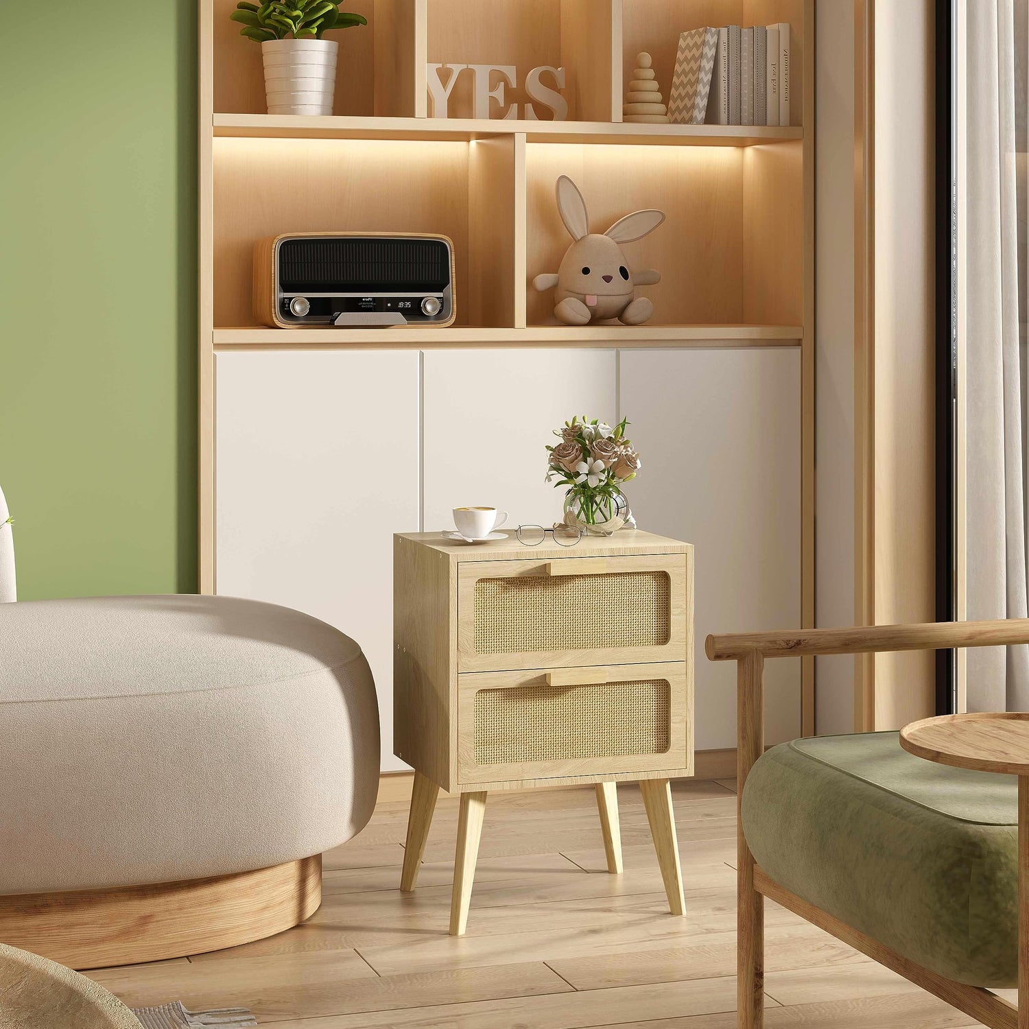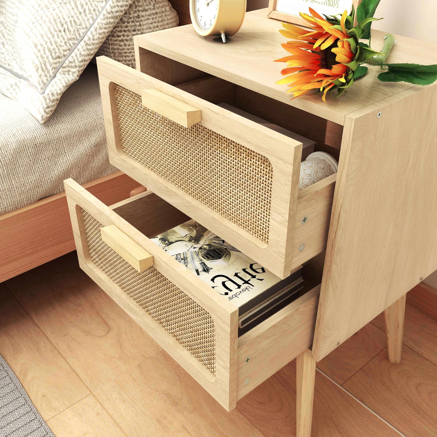 Details: Rattan Nightstand , Wood End Table , Side Table with 2 Hand Made Rattan Decorated Drawers,Boho Bedsidetable,Wood Accent Table with Storage for Livingroom, Bedroom, Natural CTG59Y