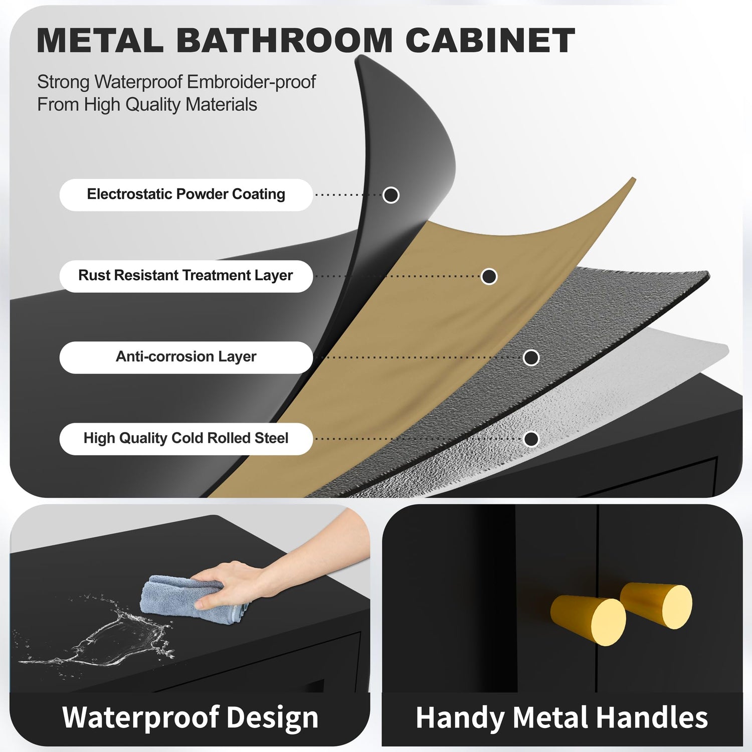 - [ROBUST & STABLE] Metal bathroom cabinet is manufactured by a duty steel frame, allows each shelf able to hold up to 80 pounds ,metal cabinet doesn't smell at any time,Comes with anchor hardware to prevent tipping over or accidents