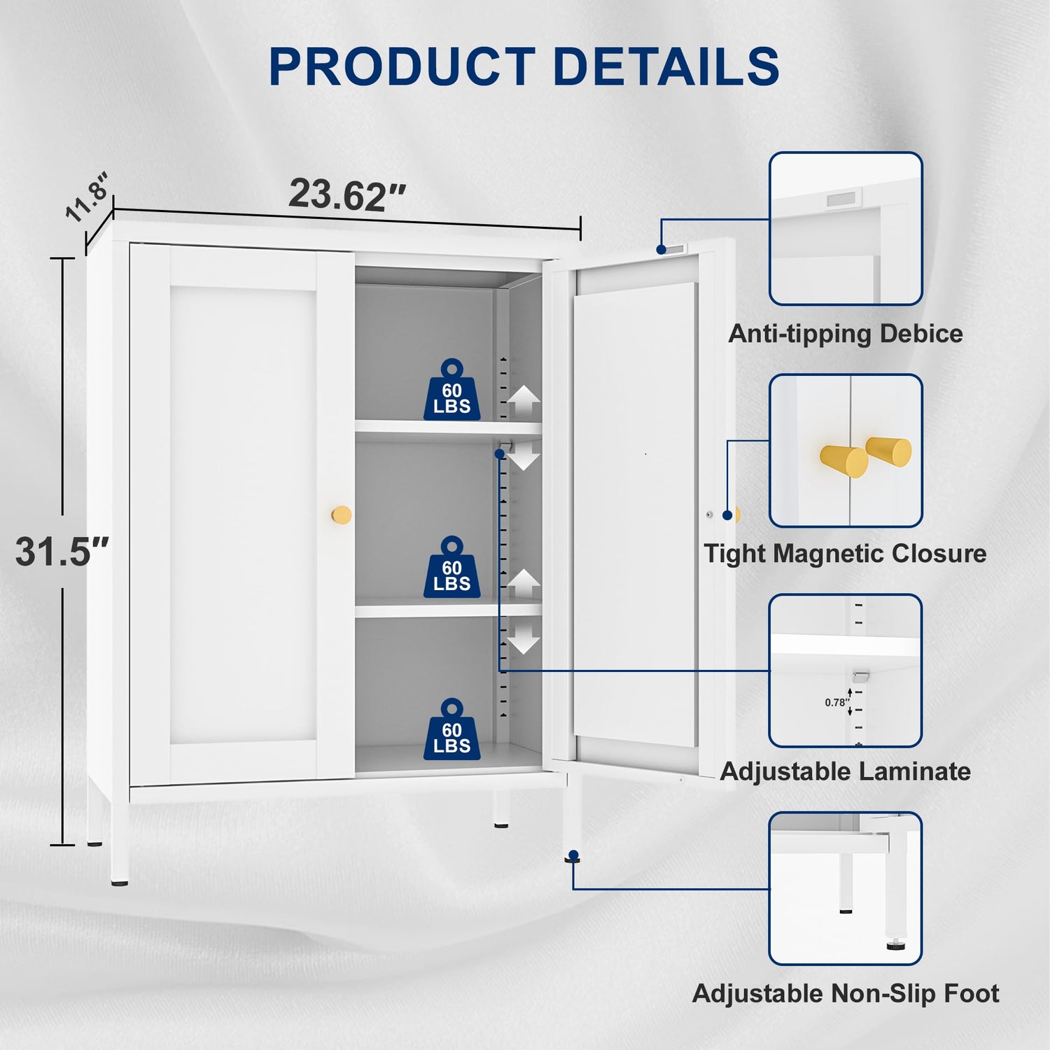 - [ROBUST & STABLE] Metal bathroom cabinet is manufactured by a duty steel frame, allows each shelf able to hold up to 60 pounds ,metal cabinet doesn't smell at any time,Comes with anchor hardware to prevent tipping over or accidents
