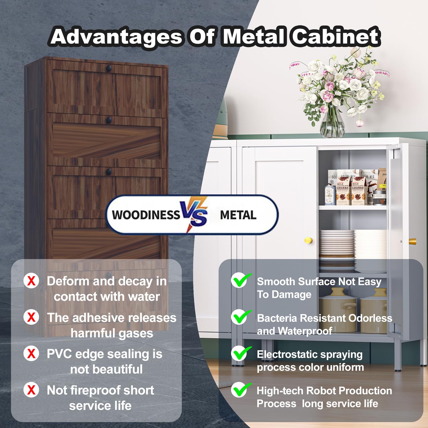 - [WATERPROOF & RUST-PROOF] The cabinet is composed of electrostatic powder coating, anti-rust treatment layer, anti-corrosion layer, and high-quality steel.Good raw material ensure that your cabinet will not rust and easy to clean