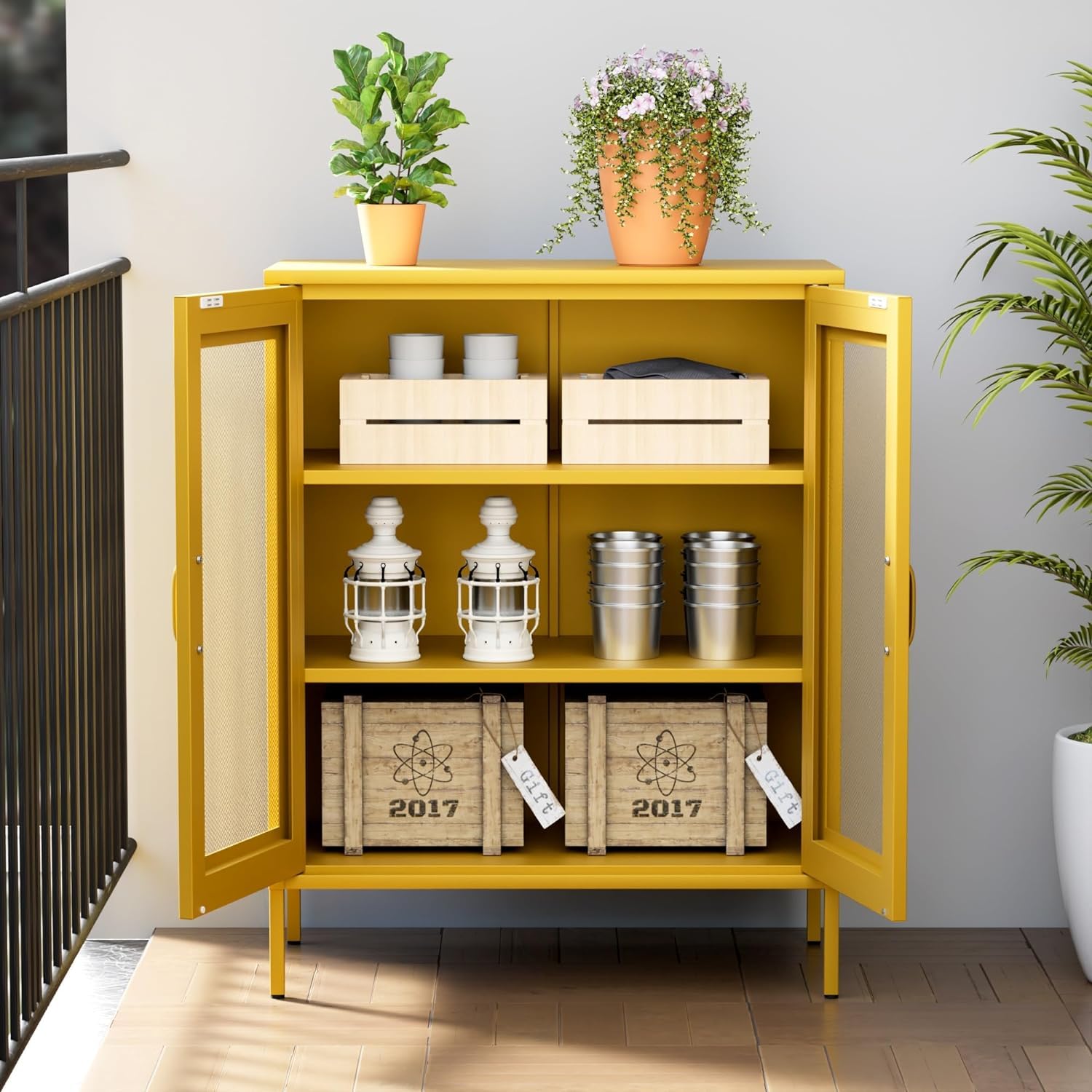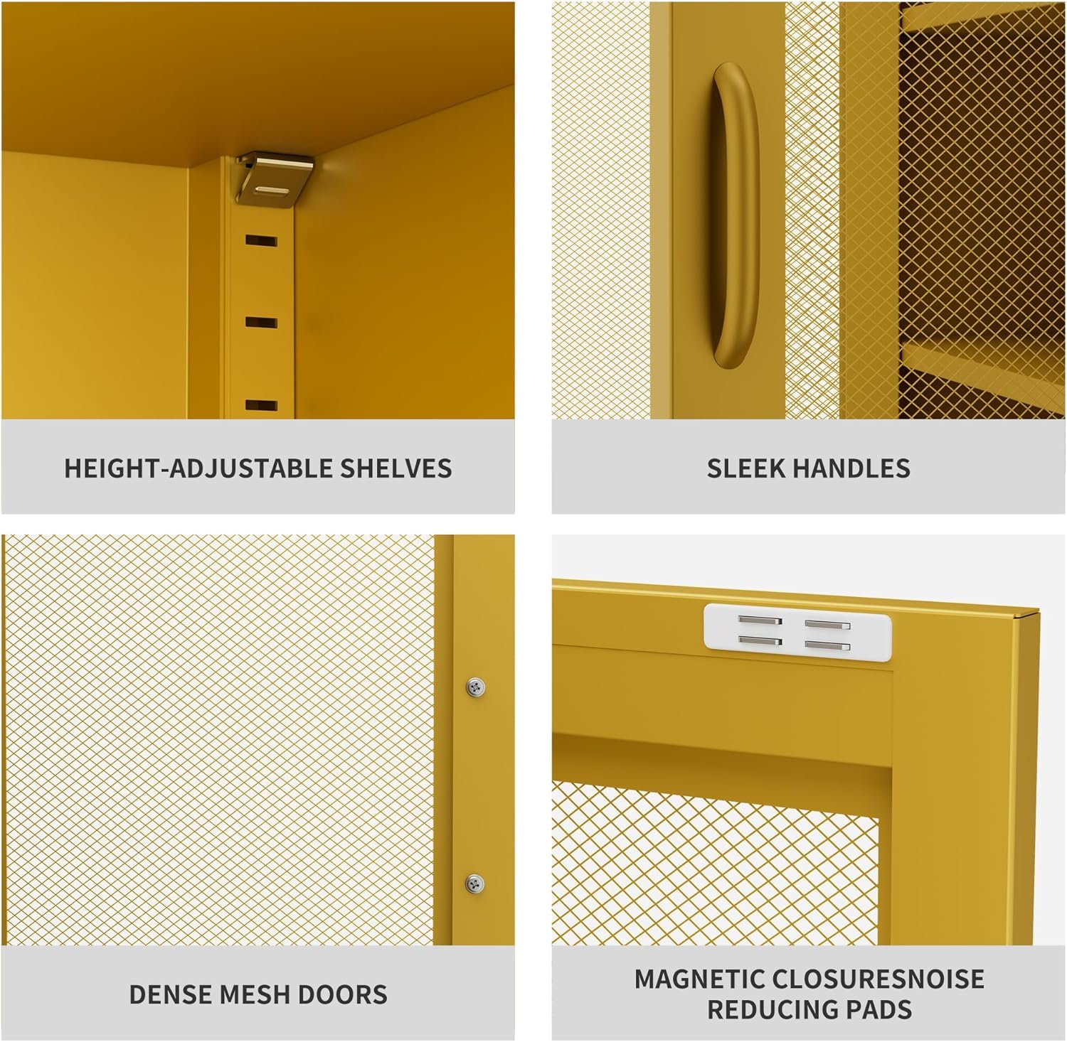- 【Practical Features】- Magnetic locks and rubber buffers guarantee smooth and noise-free door closure. Adjustable feet ensure stability on uneven surfaces. Vent Door Design allows for proper ventilation of stored items.