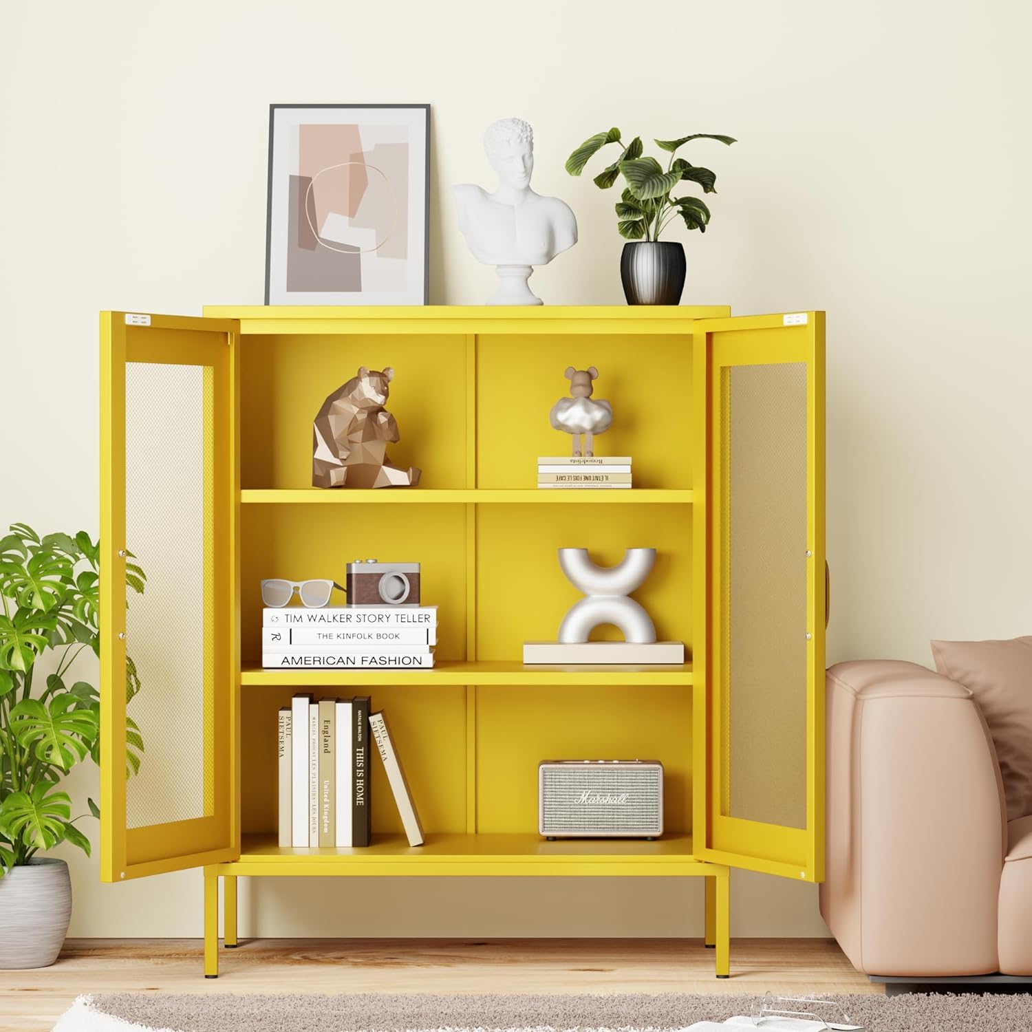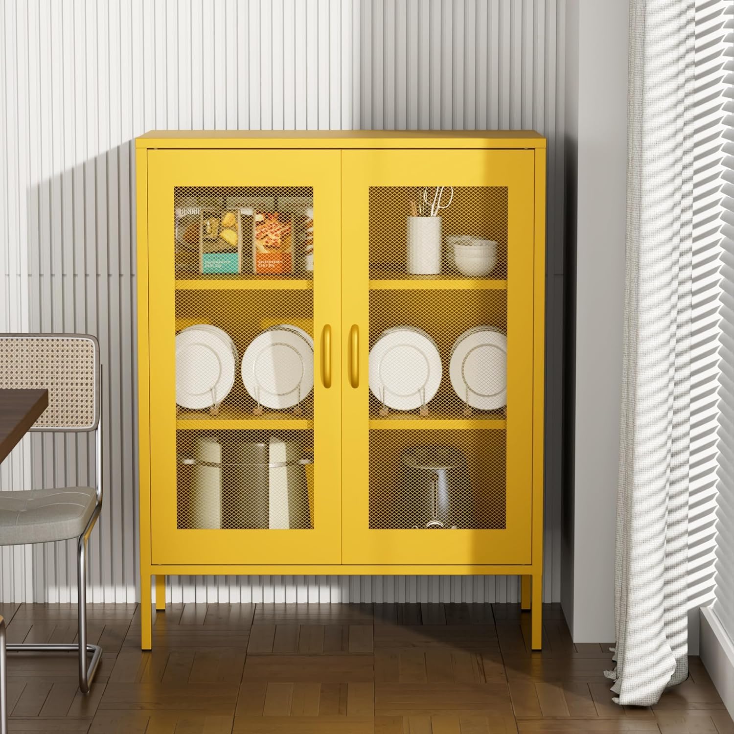 - 【Mesh door design】Not only aesthetically pleasing, but it also adds a touch of mystery to the items you store. Whether in your office, living room, or classroom, it adds a touch of style to your space.