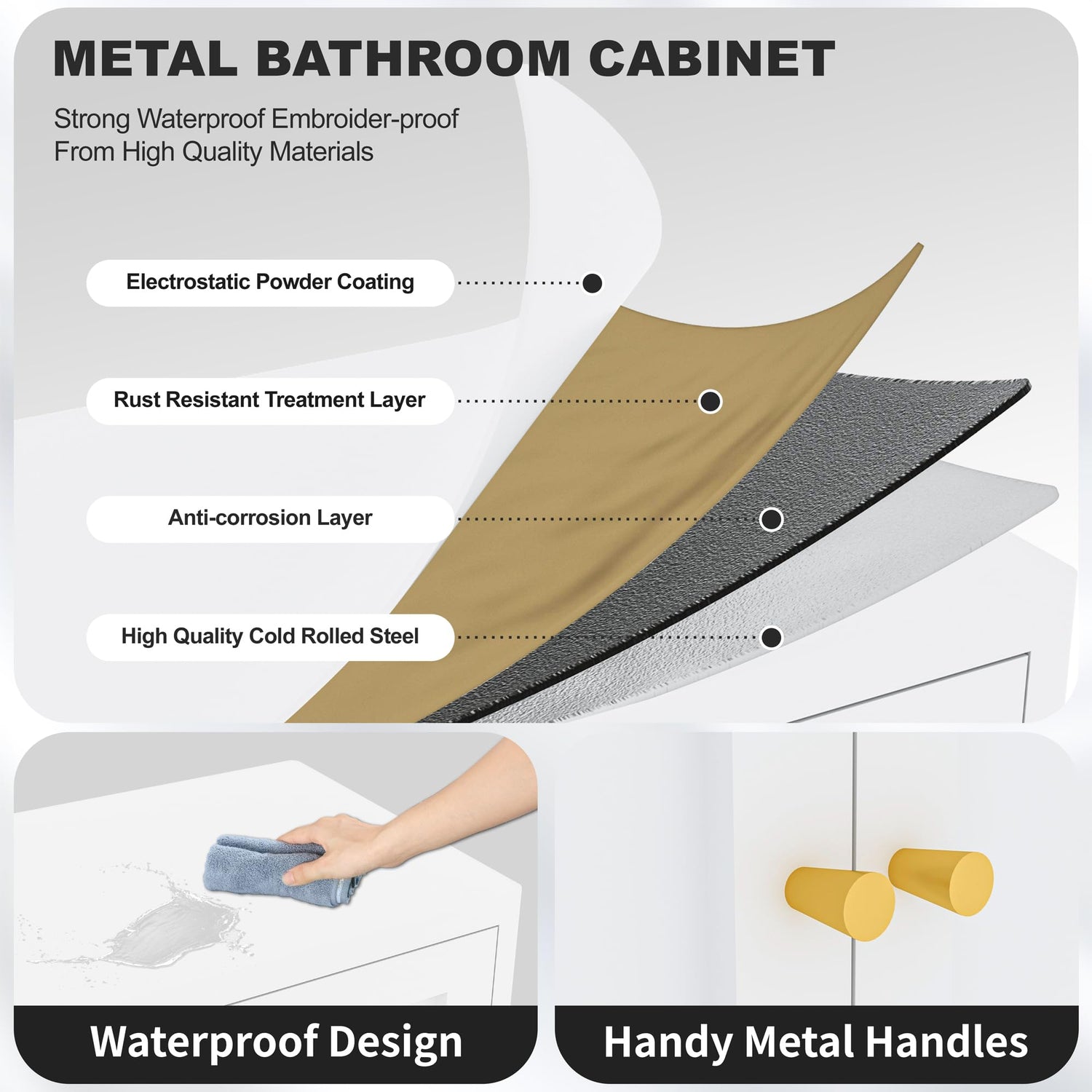 - [ROBUST & STABLE] Metal bathroom cabinet is manufactured by a duty steel frame, allows each shelf able to hold up to 60 pounds ,metal cabinet doesn't smell at any time,Comes with anchor hardware to prevent tipping over or accidents