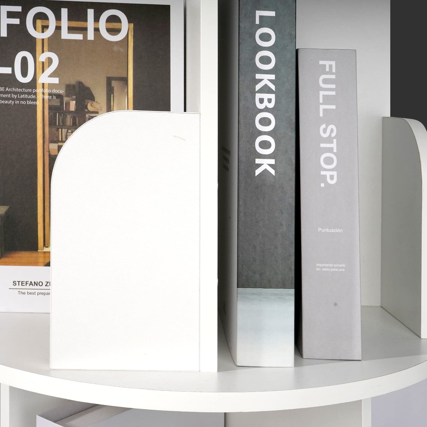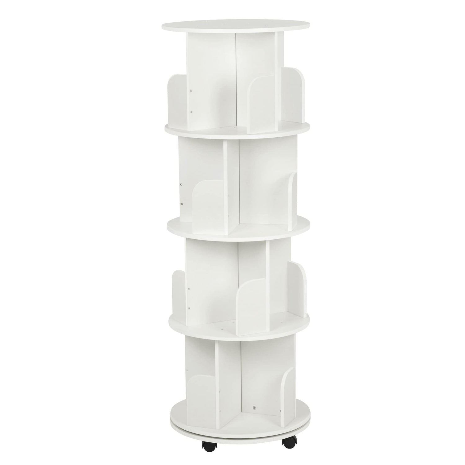 ybaymy 4-Tier 360° Revolving Bookshelf with Wheels - Modern White Floor Display Bookcase