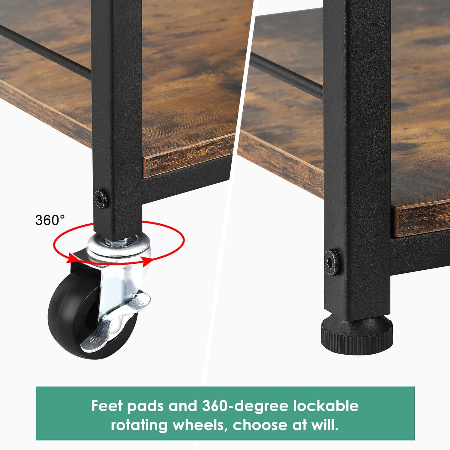 - Able to Bear 200 Pounds:Compared with other standing kitchen shelf unit with plastic wheels, the wheels of our cart on wheels for kitchen are mainly made of high-quality metal, which is more sturdy. Each shelf can carry up to 50 pounds, and the maximum load is about Is 200 pounds. The 360° wheel design allows you to move heavy objects quickly. Two of the wheels are equipped with locks, making it convenient for you to fix the position in daily use