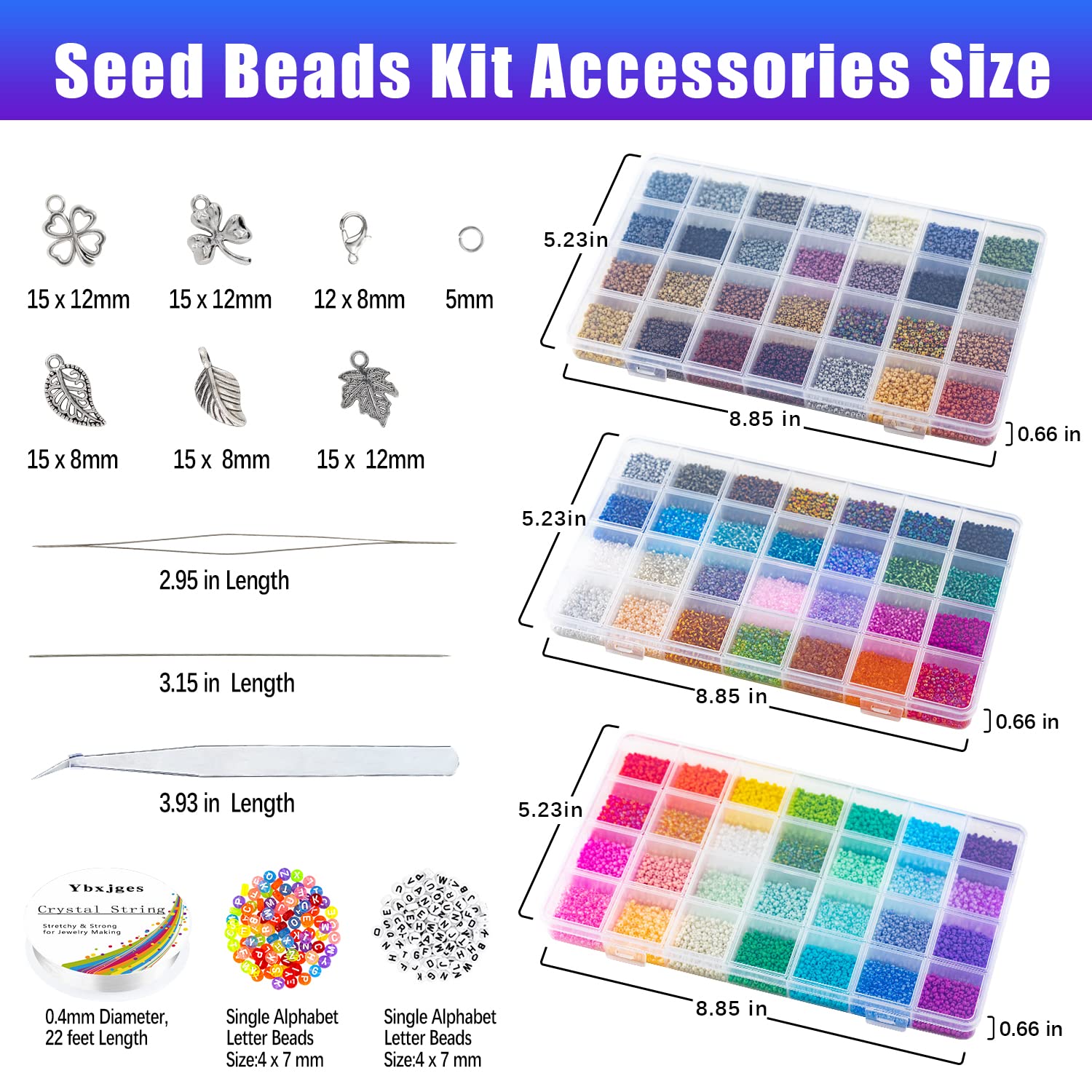 - Packaging Includes:totally 42000pcs small glass beads with 3 rolls of elastic string,with 150pcs alphabet letter beads,30pcs jump ring,5pcs lobster clasp,5pcs pendants charms,2pcs beading needles,1pcs small tweezers,for DIY making bracelets,necklaces jewelry making supplies.