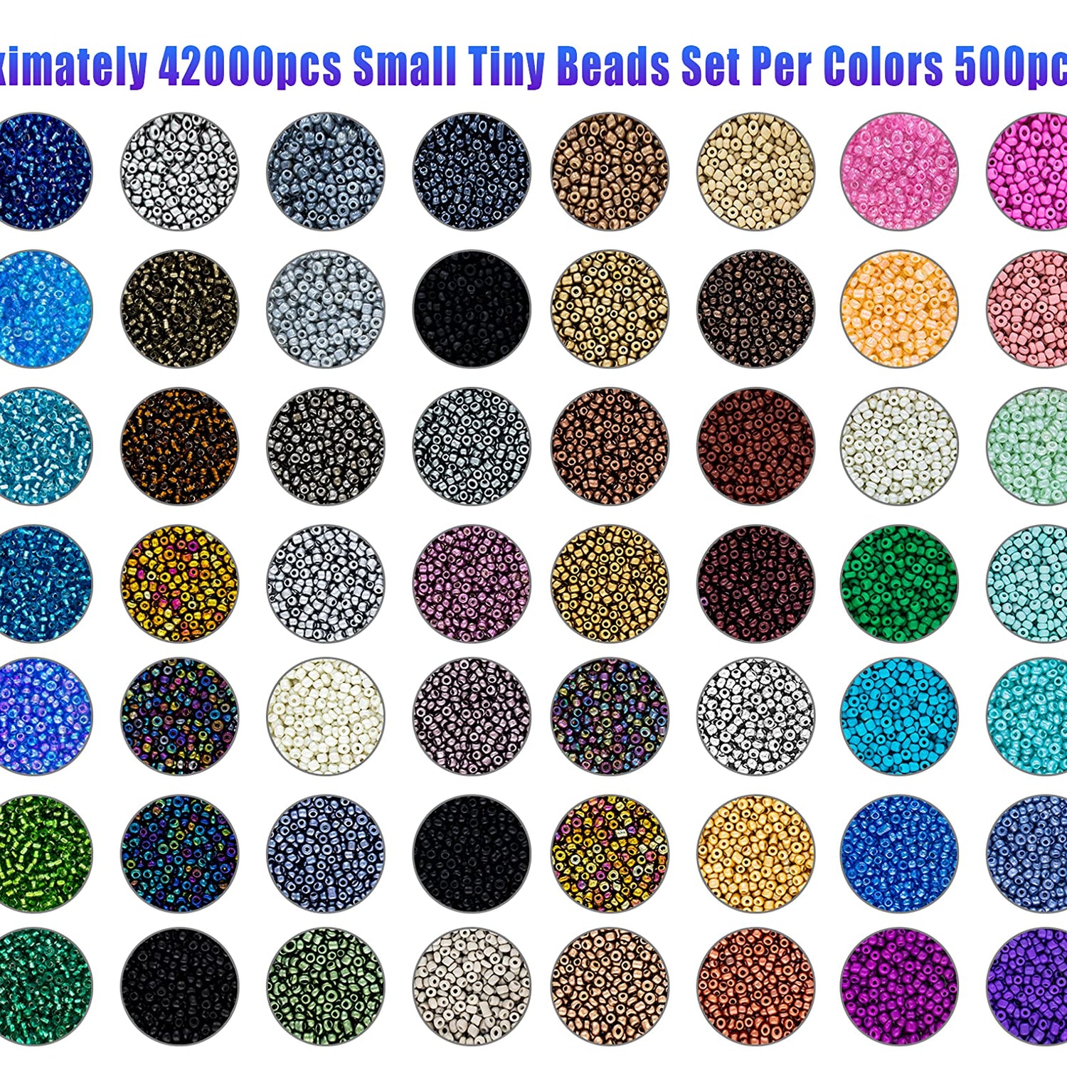 - Seed Beads Great Value Starter Kit:the material of these small tiny beads is made of sturdy glass,and the multiple colors can help you make some very beautiful and distinctive jewelry,the seed beads of the same color are stored separately in each cell,easy to distinguish organize,with 42000pcs seed beads,very suitable for completing some large jewelry making and handicraft making,also a perfect jewelry making kit for adults and beginners.
