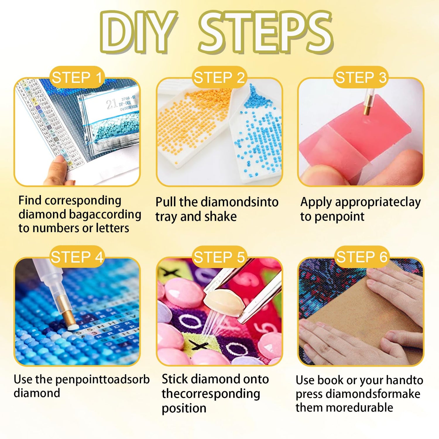 - 3.Environmental Protection Material:Our diamond painting kits use 5D high-definition printing,clear grid,waterproof oil canvas,delicate texture, long storage time. Environmentally friendly hot glue,strong adhesion,no punching.High-quality diamond,26 segments,shiny and delicate,the finished product has a gorgeous effect and a strong sense of hierarchy.