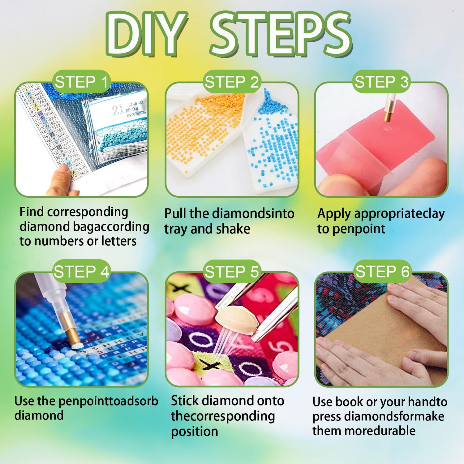 - 5.After sales service:Our gem art kits are all high-quality products.If you have any problems,such as missing diamonds or tools, please contact us immediately by email and we will reply within 24 hours.