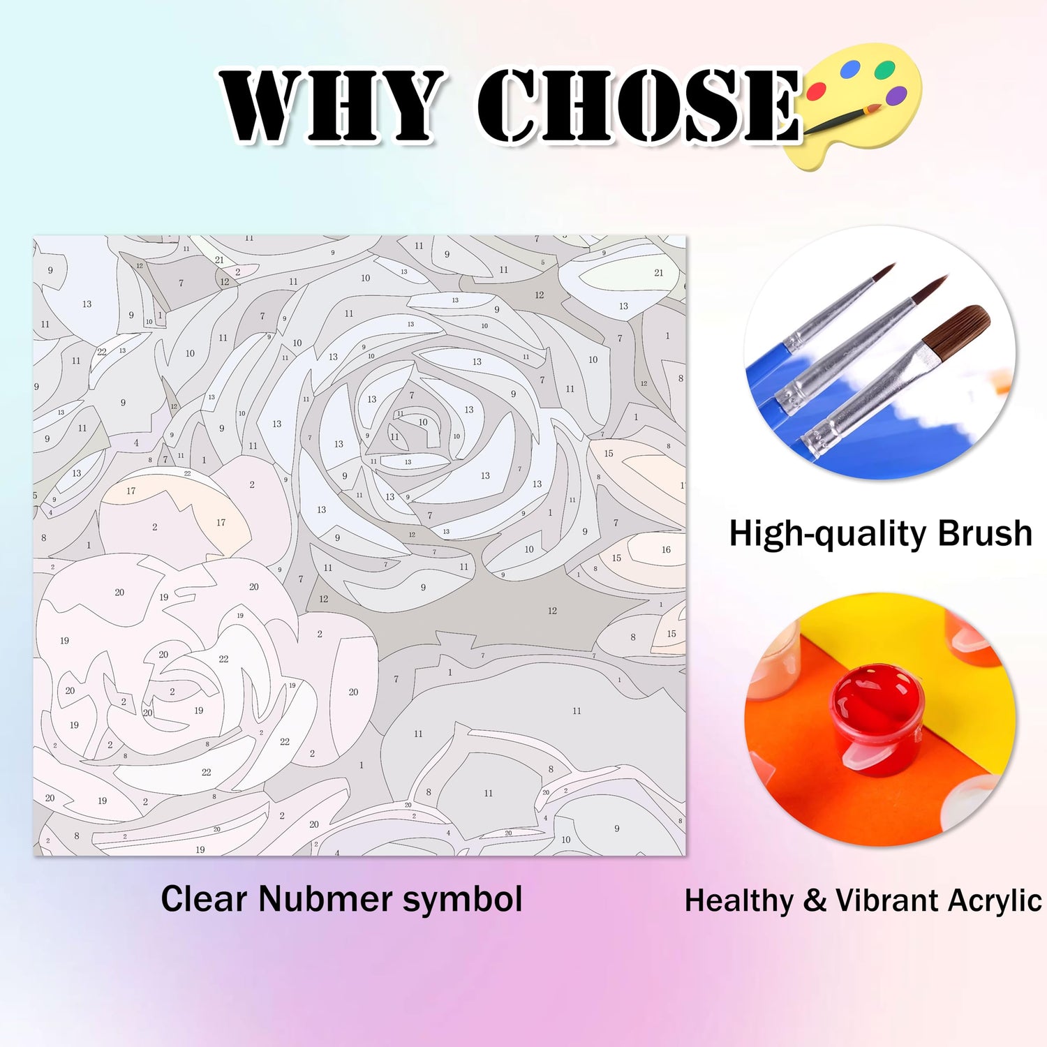 - 2.Succulent painting paint by numbers adult :DIY paint by number can experience a sense of achievement,learn to reduce stress,emotional adjustment,enhance self-confidence and perseverance cultivate patience,suitable for everyone.