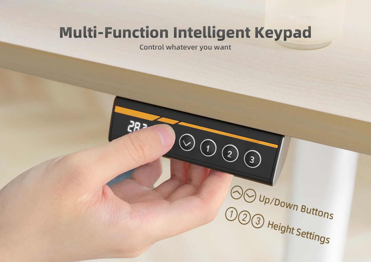 - Smooth Electric Height Adjustable: The stand up desk features three preset buttons to customize your desired heights from 28.3" to 46.5"