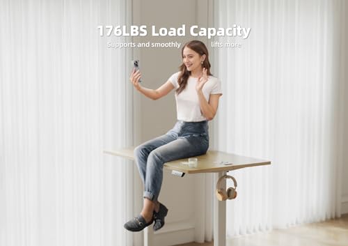 YDN Electric Standing Desk, Adjustable Height Stand up Desk, 63x24 Inches Sit Stand Home Office Desk with Splice Board,Natural Top