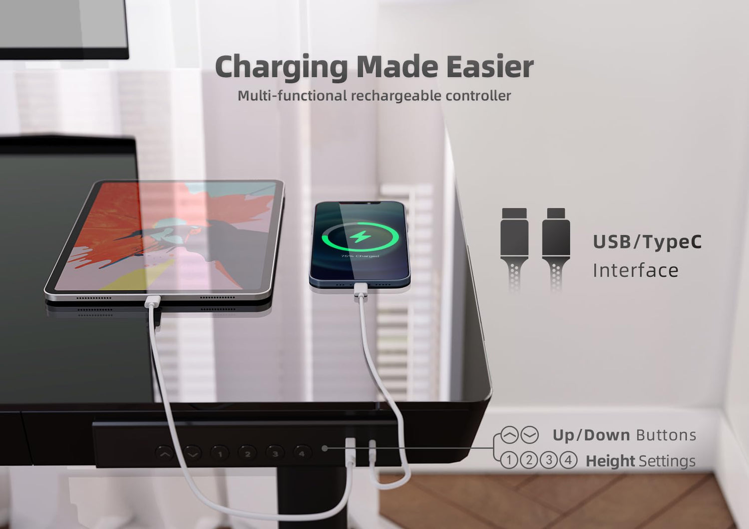 - Charging Capability: With the inclusion of a USB port and a Type-C port, the sit stand desk offers smart charging functionality. You can conveniently charge two devices simultaneously.