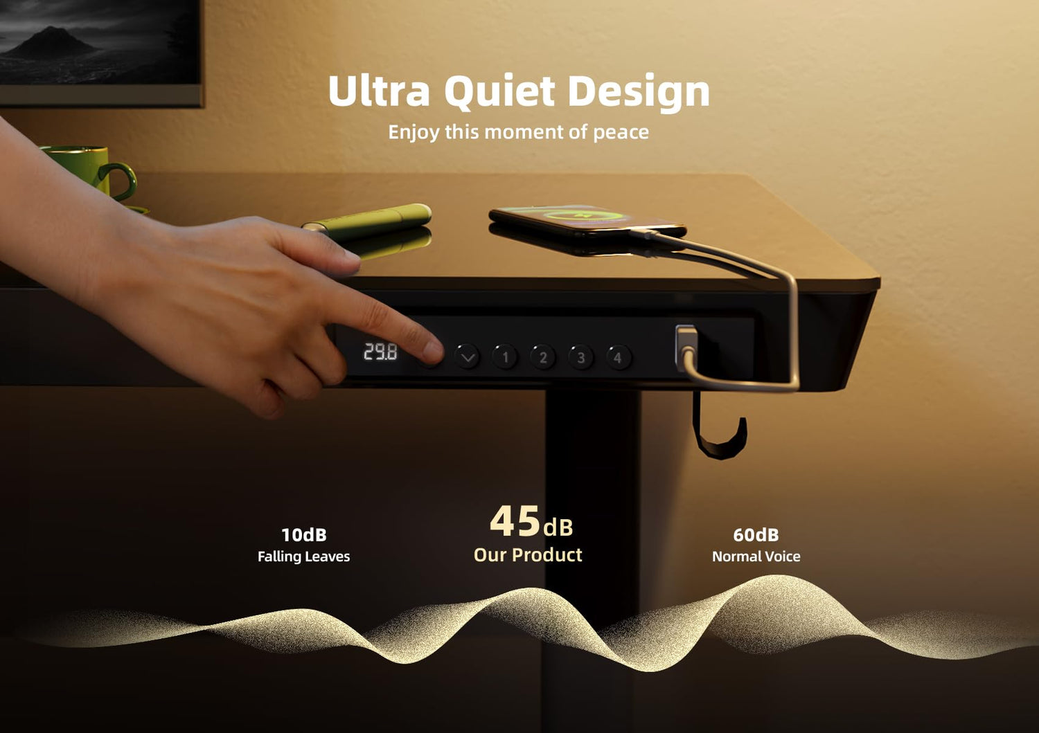 - Powerful and Stable Motor: The glass sit to stand desk is equipped with a powerful motor that operates quietly, ensuring a peaceful environment. The motor delivers smooth and stable lifting motion, capable of bearing loads of up to 132lbs.