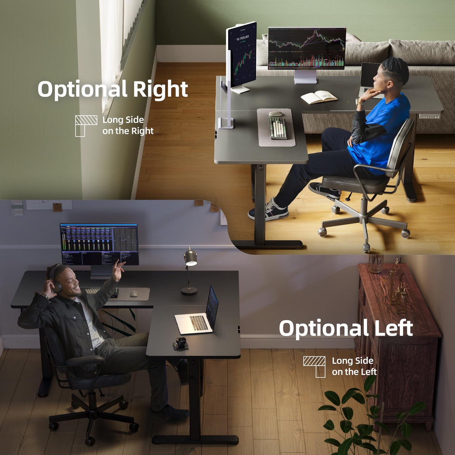 - Flexible L-Shaped Design: This l shaped standing desk offers versatile installation options, allowing you to choose between left or right installation based on your personal preference. It seamlessly fits into any room, whether it’s an office, study, or living room. The L-shape not only saves space but also creates a clean, organized, and stylish workspace.