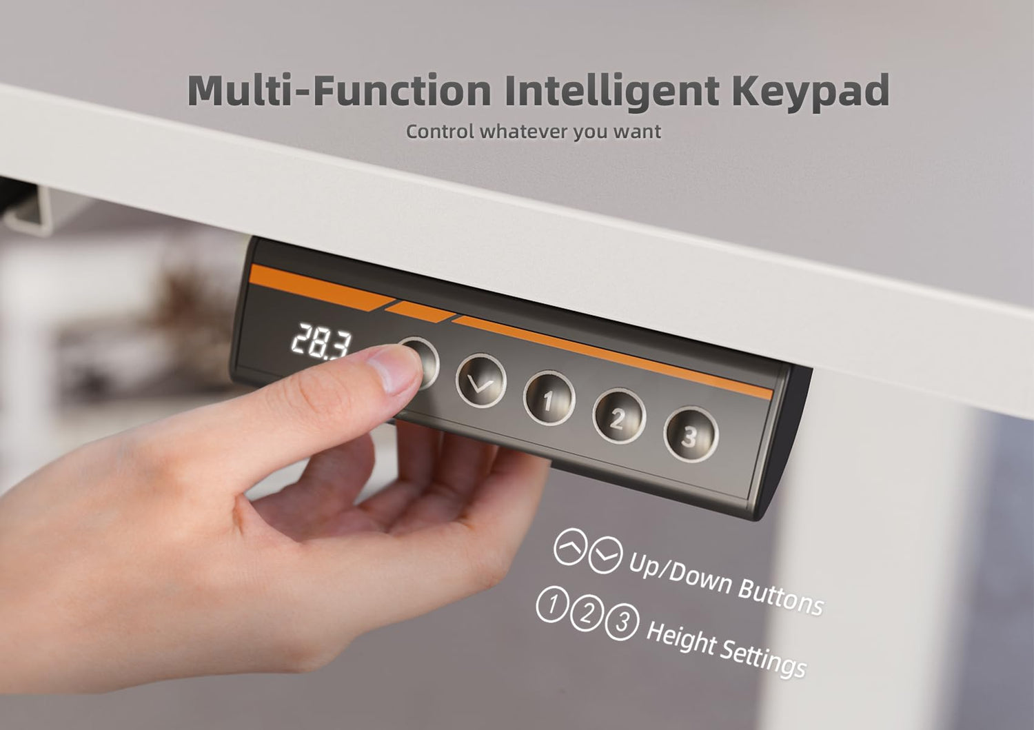 - Adjustable Height: Electric adjustable height standing desk enjoy the freedom to your preferred height, ranging from 28.3 inches to 46.5 inches. Equipped with three memory settings, this stand up desk allows you to save your custom height preferences and effortlessly switch between them.