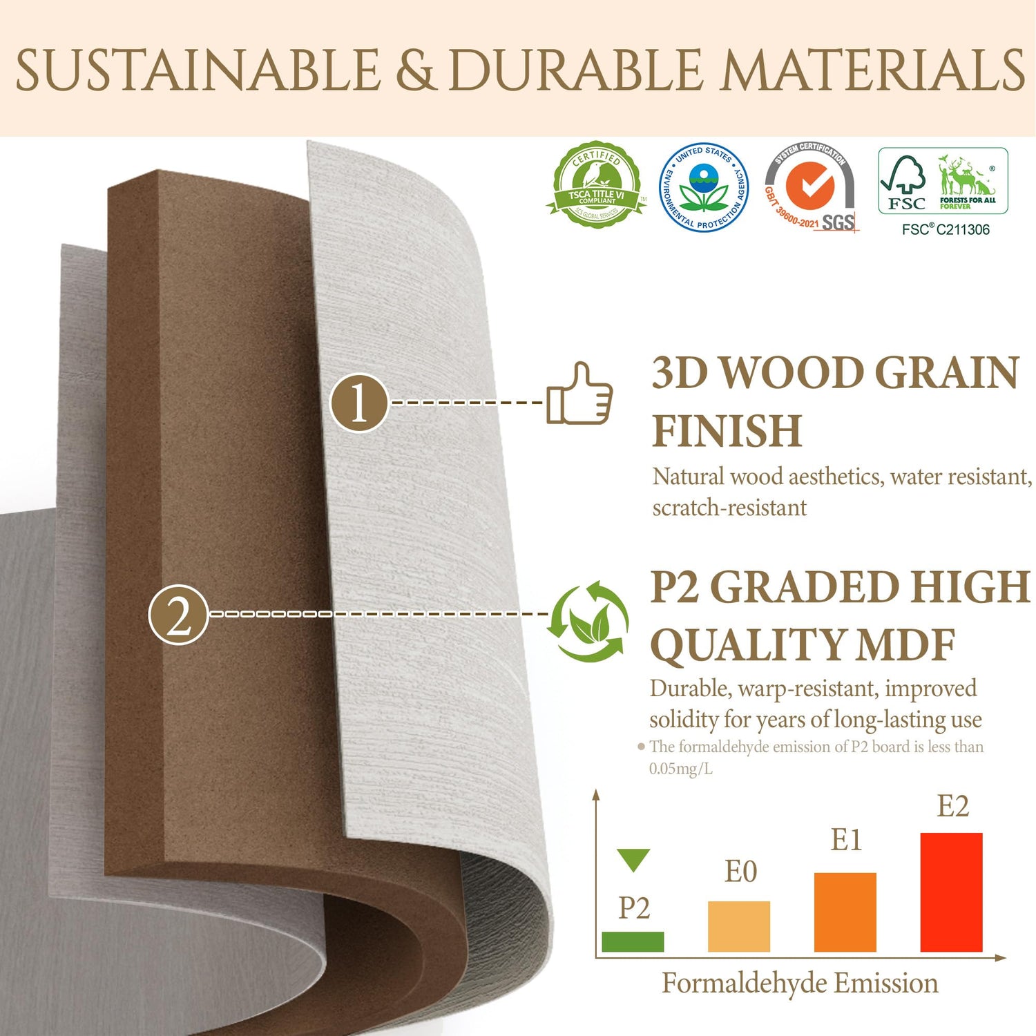 - Durable Wooden Materials: Yechen armoire closet is made from P2-grade wood, this is not only to create a safer indoor environment, but also offers increased durability and long-lasting use. The surface features a premium 3D hand-crafted veneer, creating a premium, natural look with a clear, textured finish