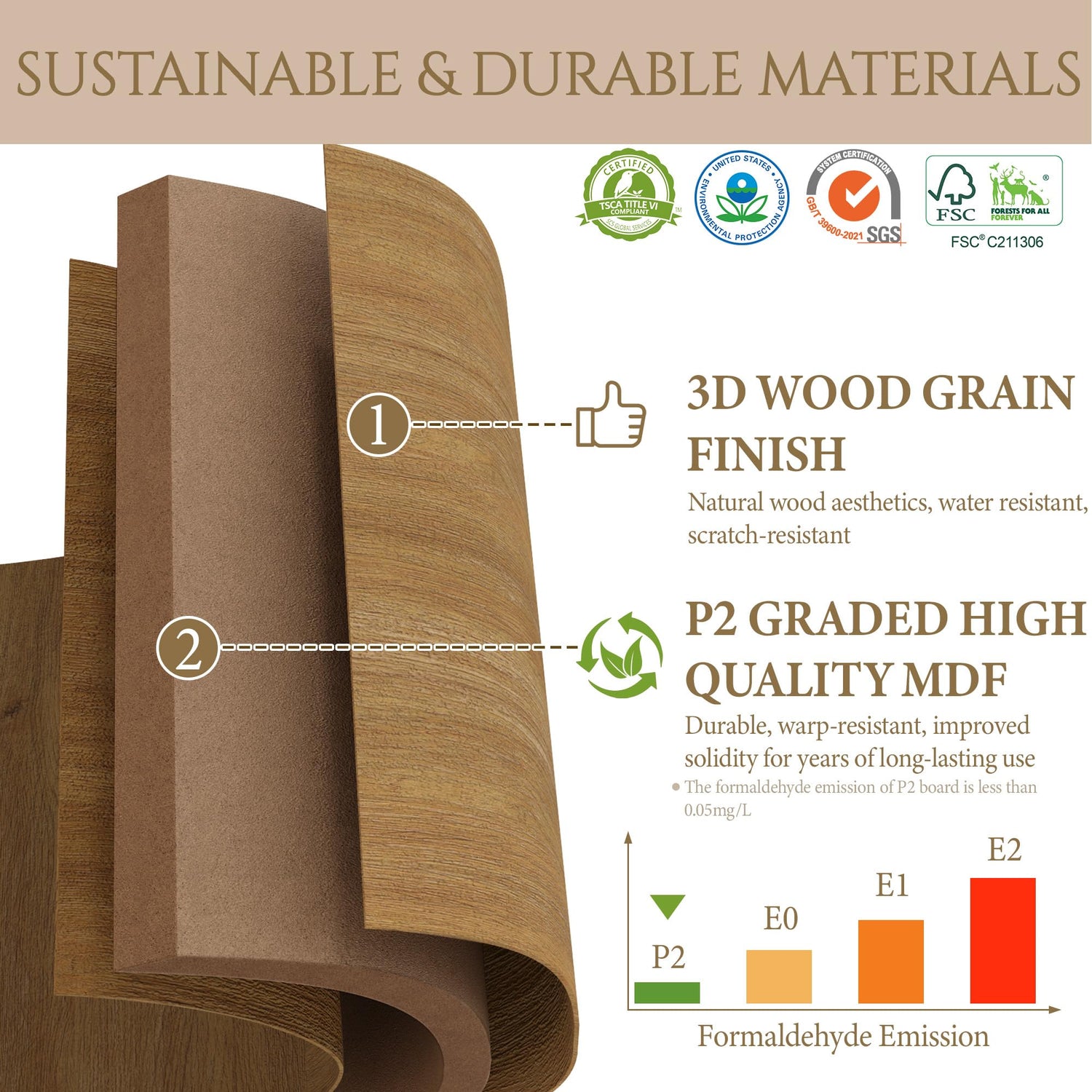- Durable Wooden Materials: Yechen armoire closet is made from P2-grade wood, this is not only to create a safer indoor environment, but also offers increased durability and long-lasting use. The surface features a premium 3D hand-crafted veneer, creating a premium, natural look with a clear, textured finish