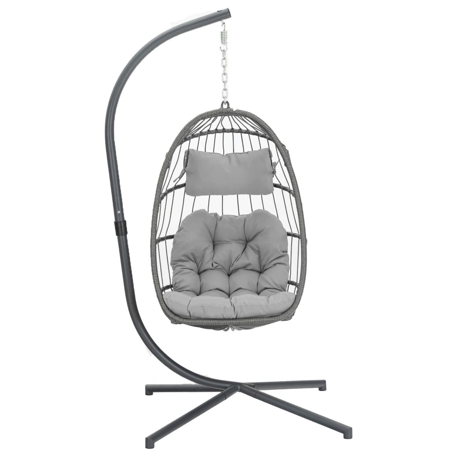 Yechen Egg Swing Chair with Stand, Rattan Wicker Hanging Egg Chair for Indoor Outdoor Bedroom Patio Hanging Basket Chair Hammock Chair with Aluminum Steel Frame, UV Resistant Cushion 350lbs Capacity