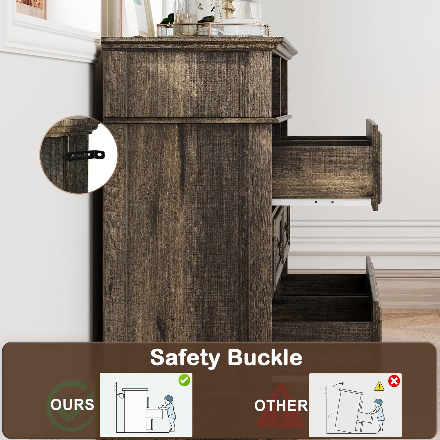 - [Enhanced Safety and Stability] Your family’s safety is our top priority. This dresser is thoughtfully designed with a tip-over restraint kit, providing an extra layer of protection by anchoring it securely to the wall to prevent accidental tipping. This makes it especially suitable for households with children or pets, where stability is essential.