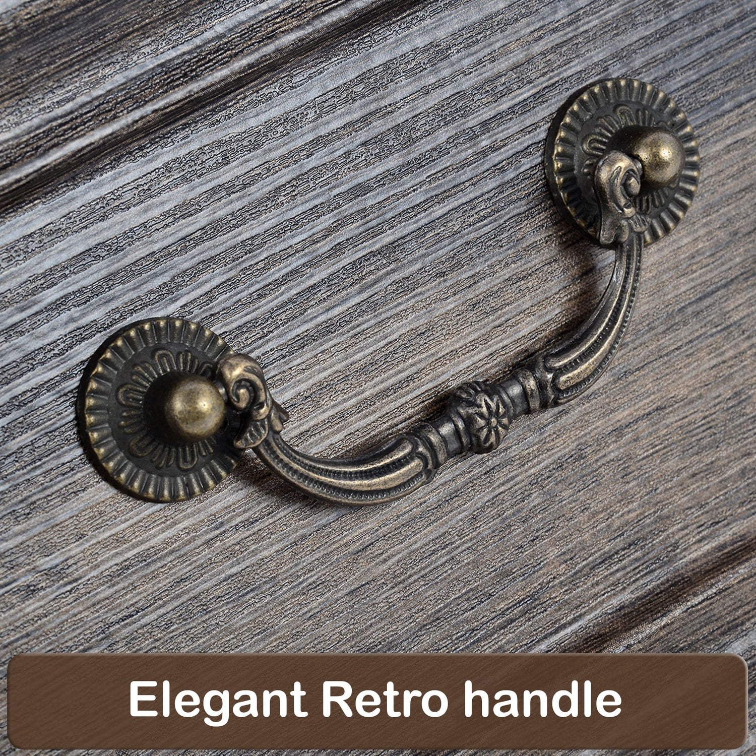 - [Richly Rustic Aesthetic] This 6-drawer dresser’s quaint profile is enhanced by a striking brownish-green oak grain with a distressed finish and thick plank styling for added rustic warmth. Antiqued handles pay homage to the farmhouse style, creating a chic and charming look that seamlessly complements any furniture or decor. Perfect for bedrooms, living rooms, hallways, and entryways.