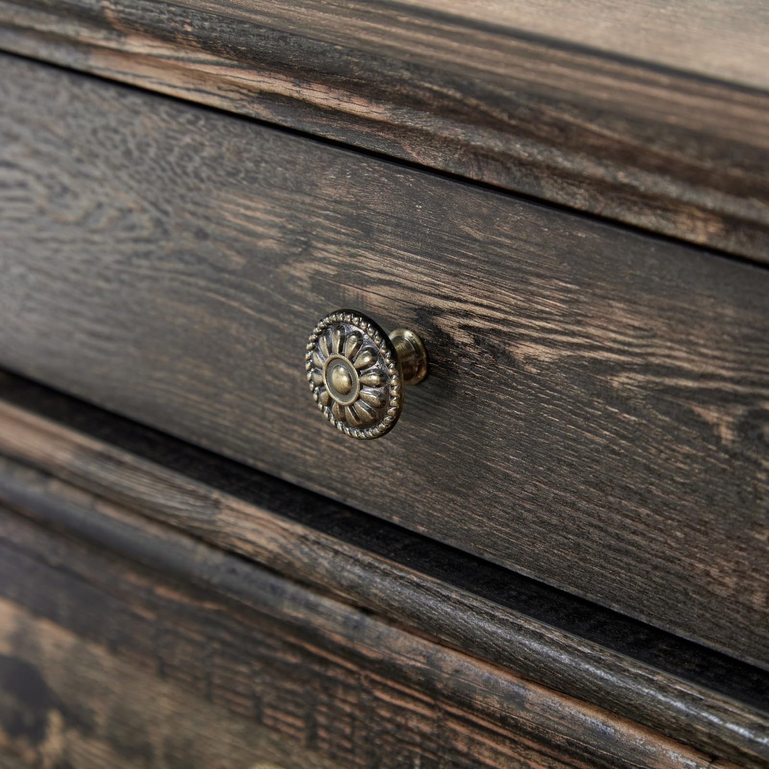 - CLASSIC VINTAGE CHARM: This 9 drawer dresser combines timeless design with elegant detailing, the small dresser featuring embossed drawer fronts, sleek beveled edges, and antique-style Roman column handles. The warm antique-brown finish and rich wood-grain top add refined charm to any traditional, farmhouse, or transitional bedroom décor.