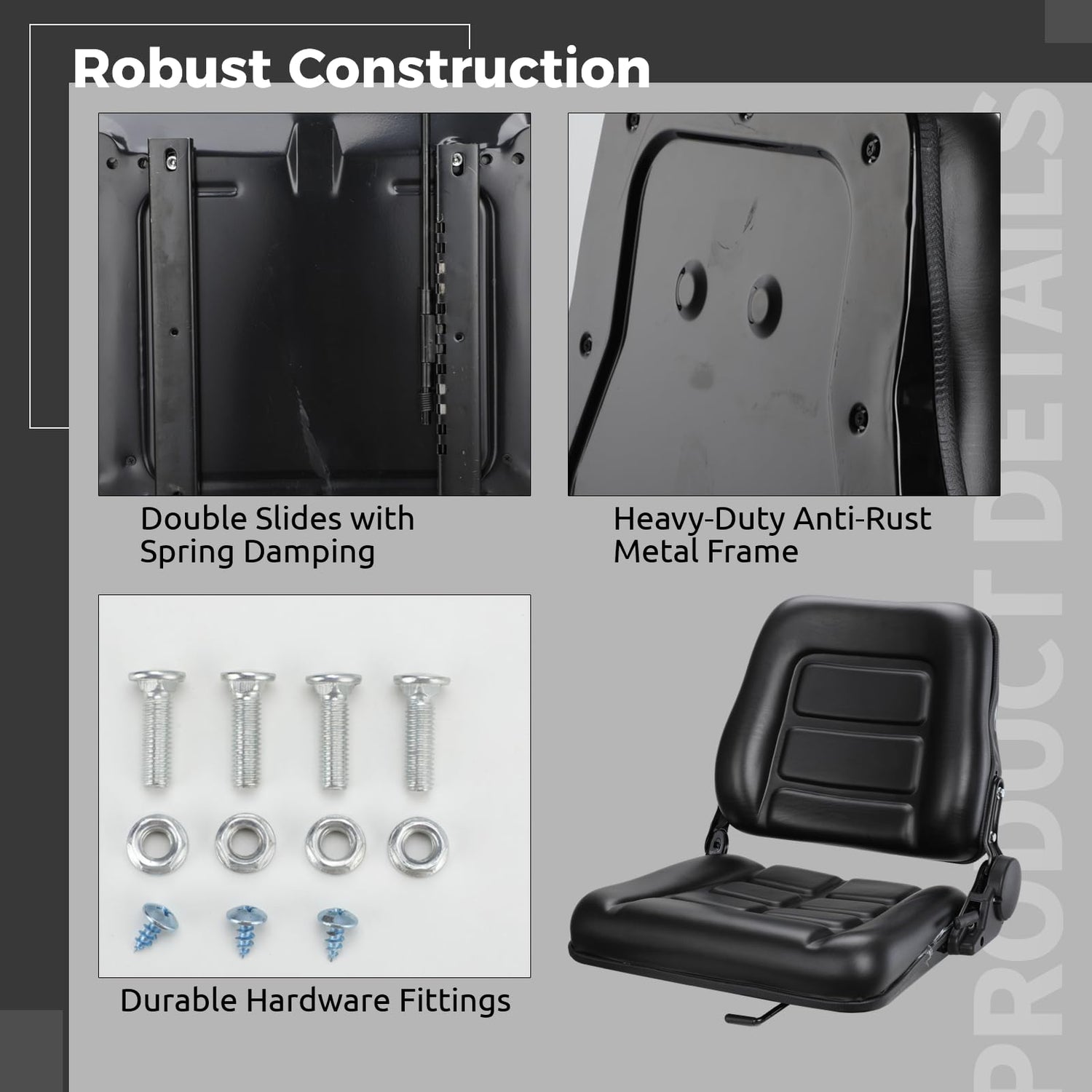 - 【Universal Fit for Versatile Applications】With a universal size, this seat is compatible with forklifts, excavators, bulldozers, ride-on lawnmowers, tractors, trenchers, and more machinery vehicles. Enjoy the comfort from a reliable seat and enhance your productivity!