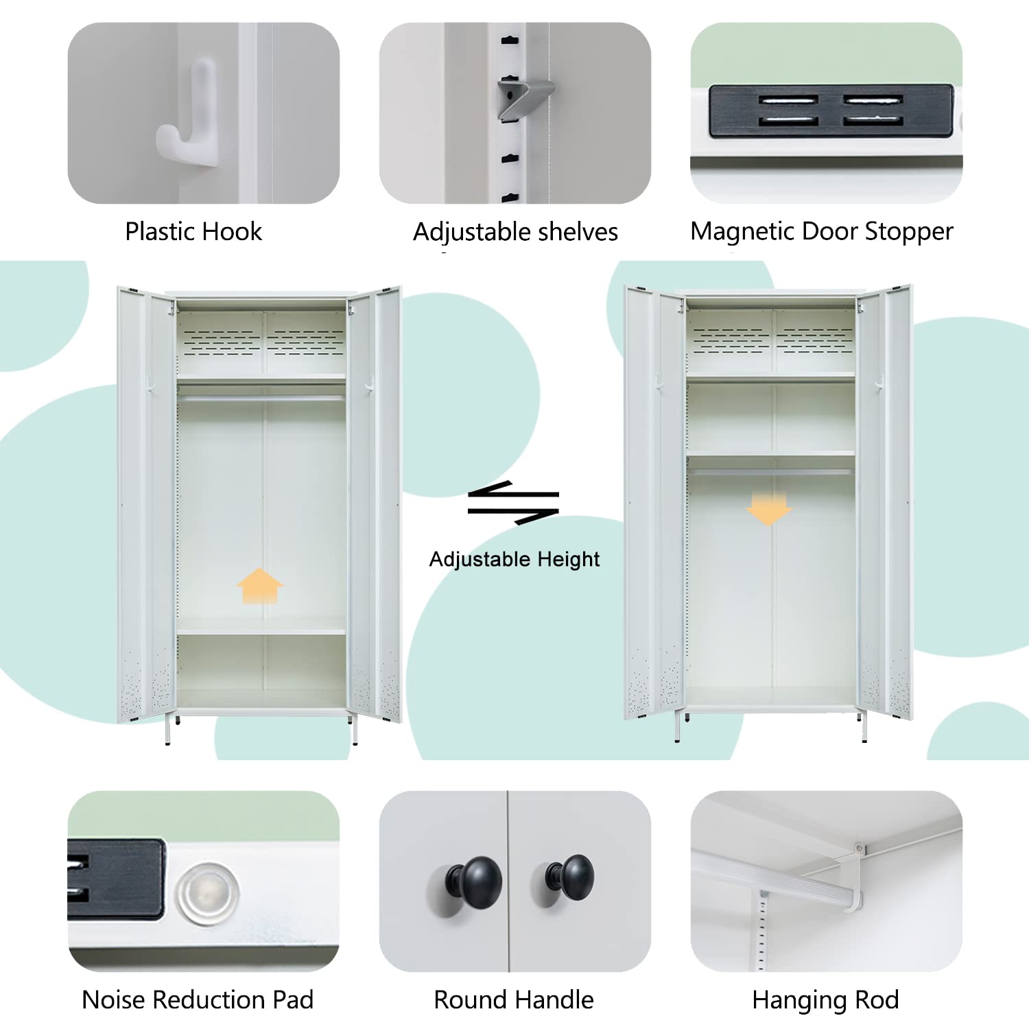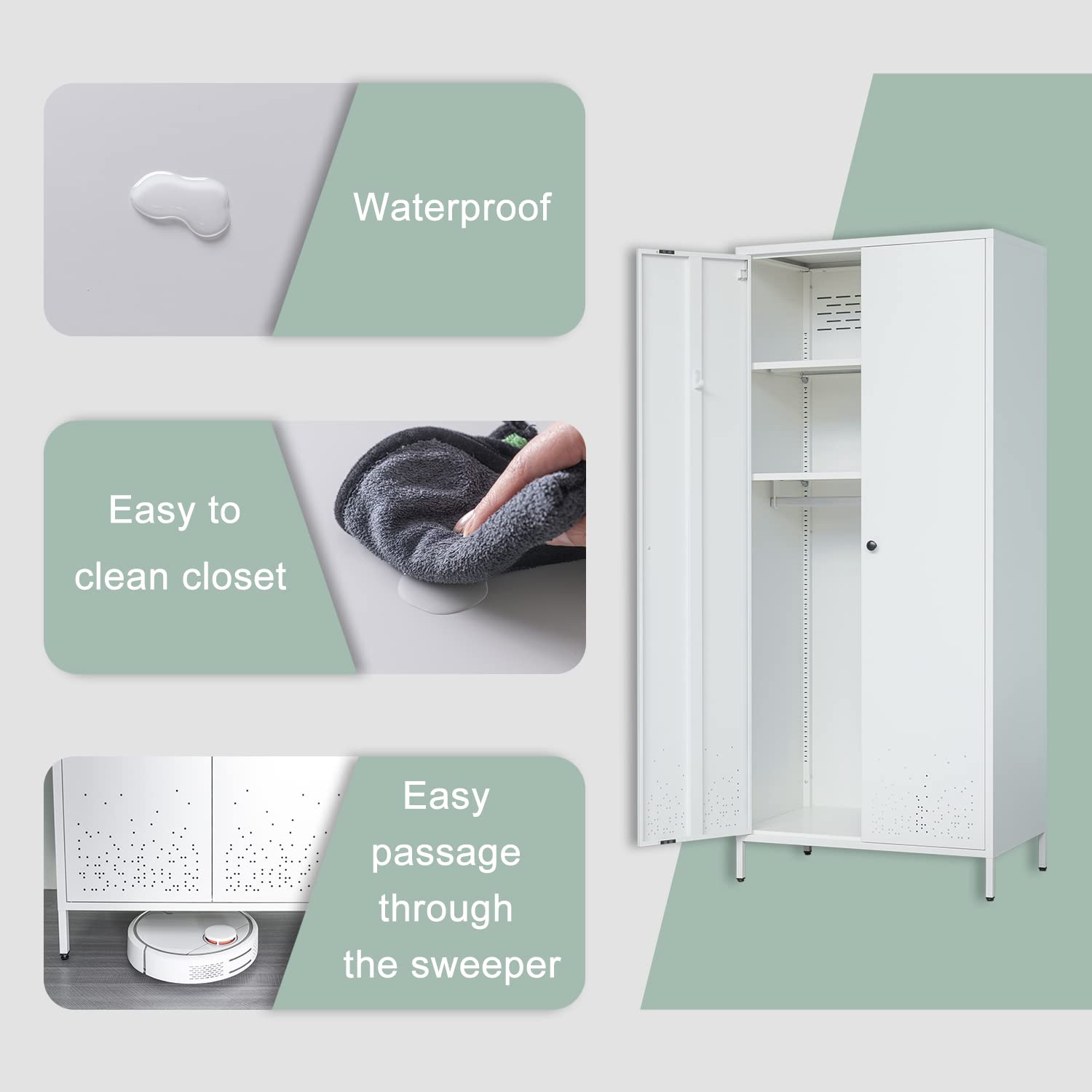 YEEZER Metal Wardrobe, Storage Cabinet with Hanging Rod,Armoire with Magnetic Door and 2 Freely Adjustable Shelves 74" H x 31.5" W x 20" D (White)