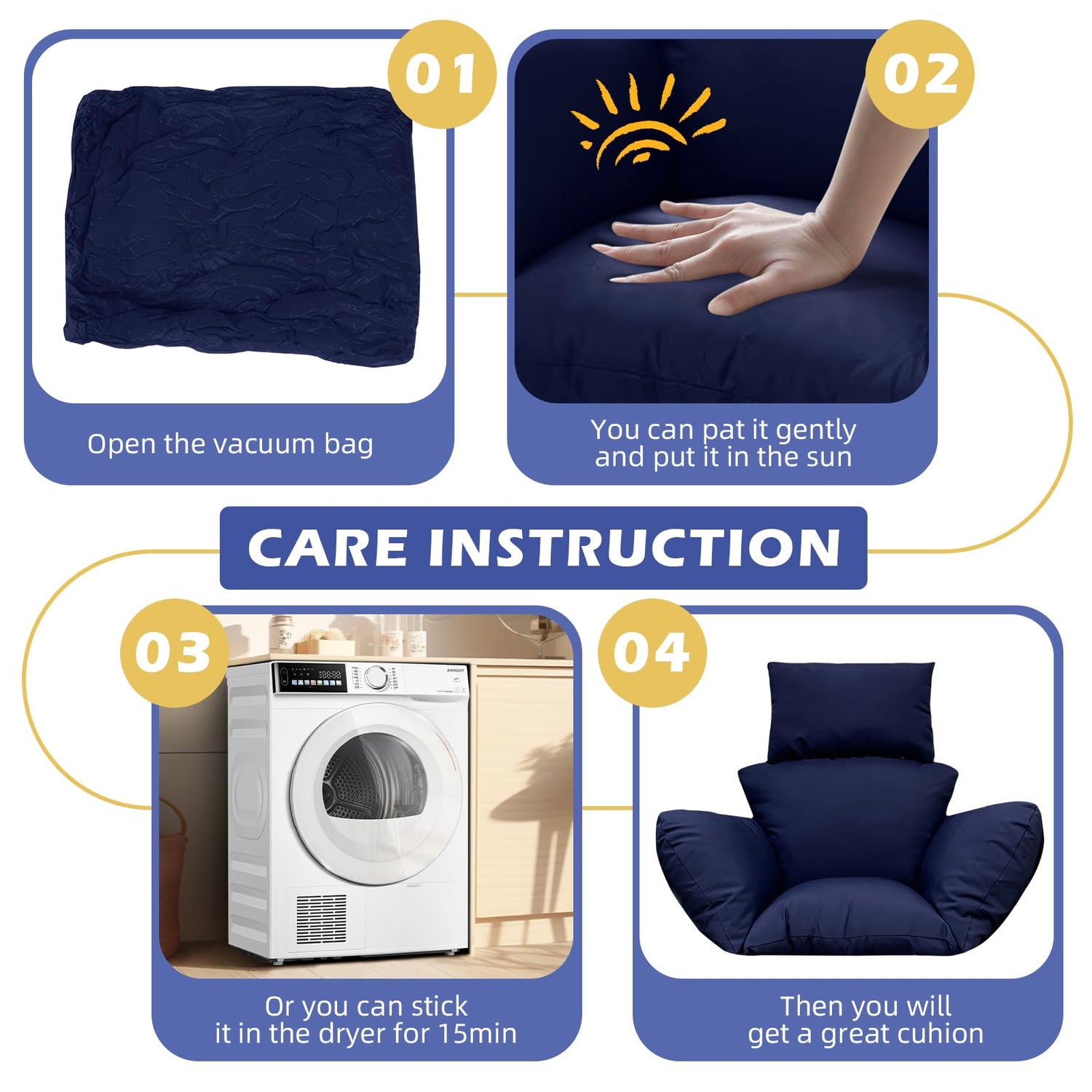 - Please Note: Egg chair cushion will be vacuum compressed. After unpacking, leave it under the sun about 5 to 7 days and gently pat up or just stick it in the dryer for 15min to making it return its fluffy shape
