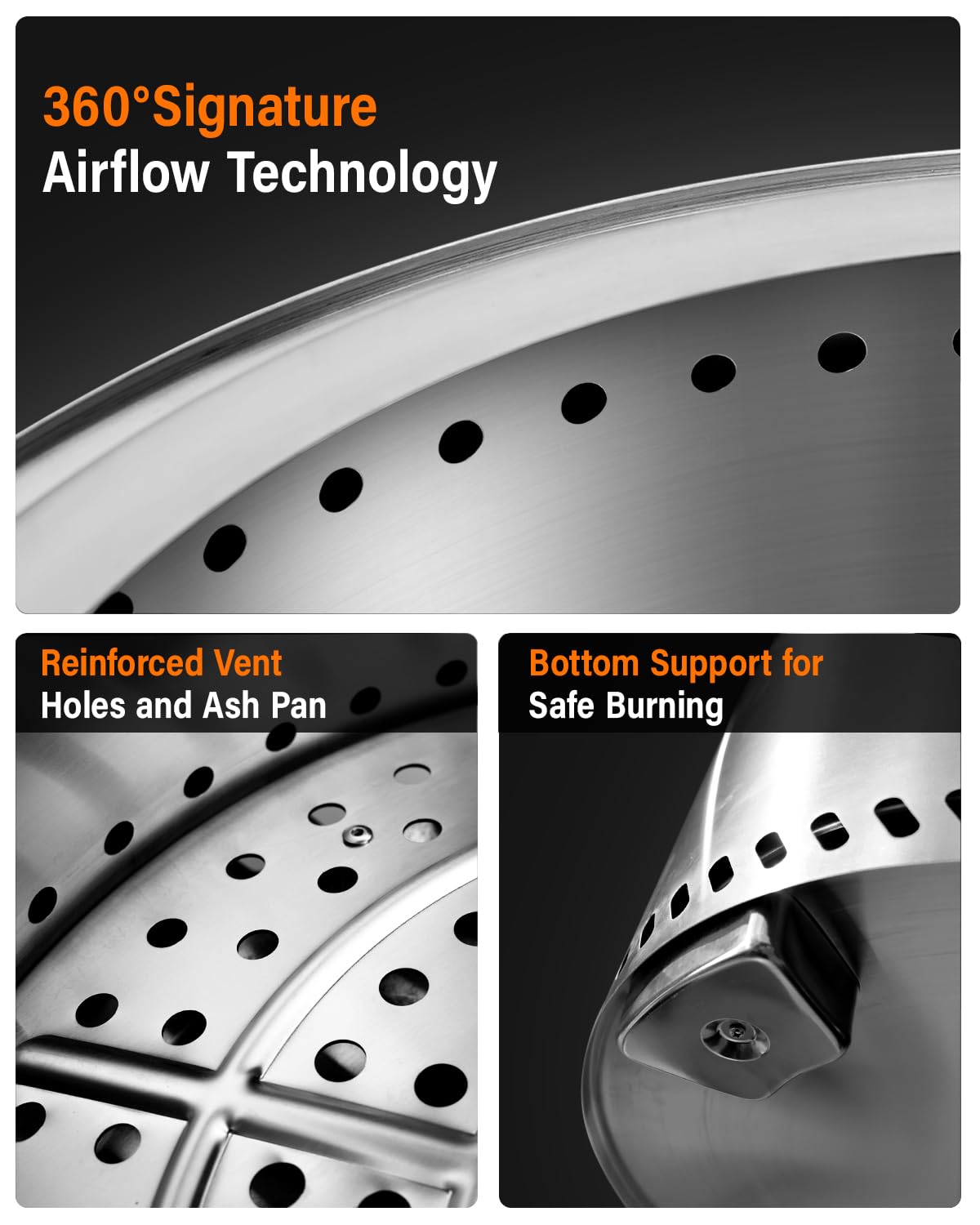 - Prolonged Use & Low Maintenance: The outdoor fire pit is crafted from high-quality 304 stainless steel, the fire pits are heavy duty, resist rust and are built to last through all weather conditions. The fire pit with removable ash pan makes cleaning easy and helps prevent air hole blockages.